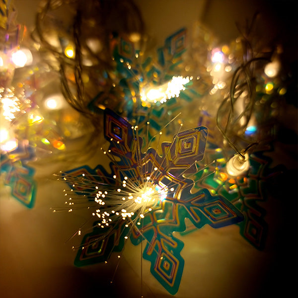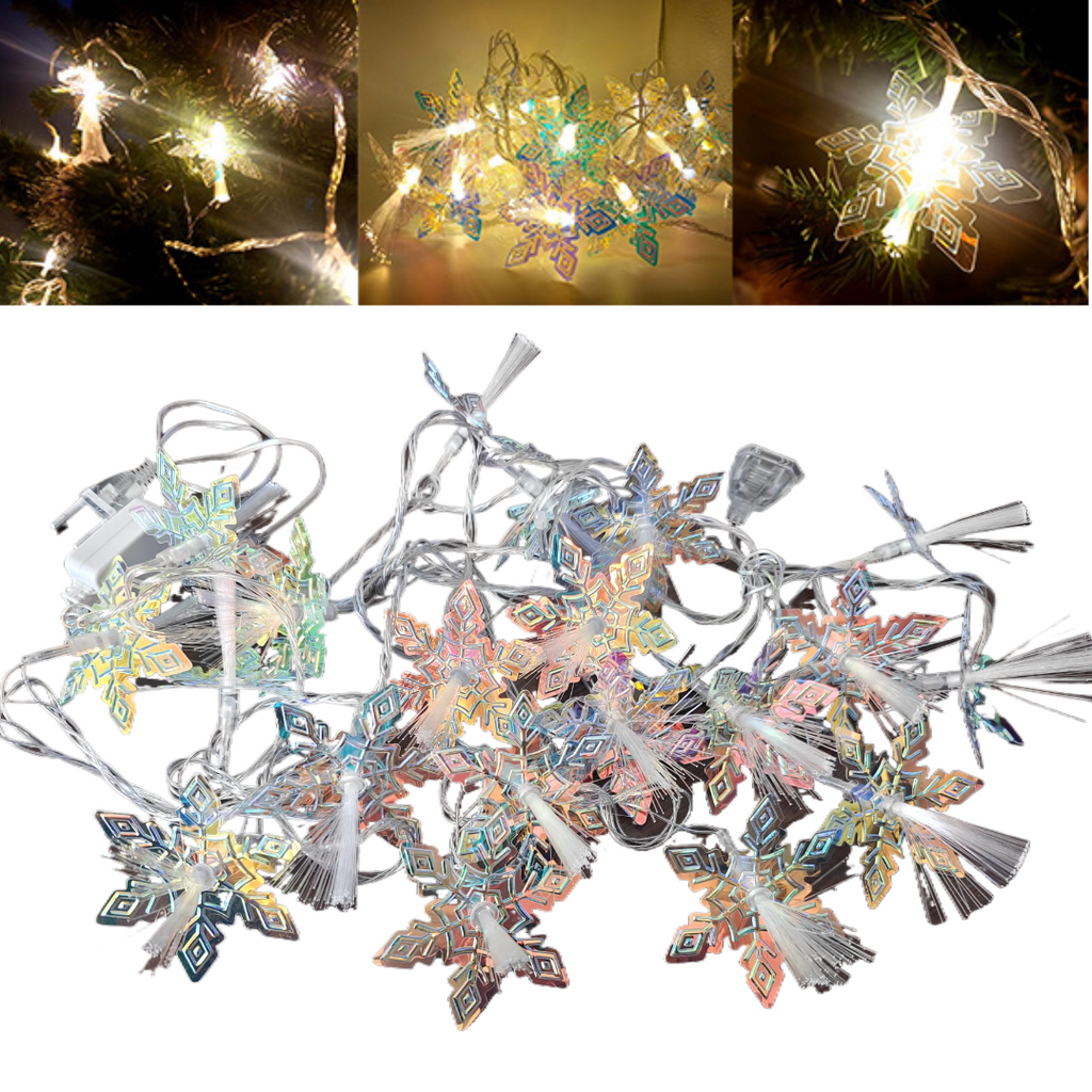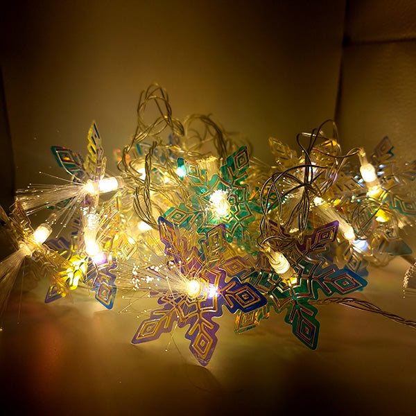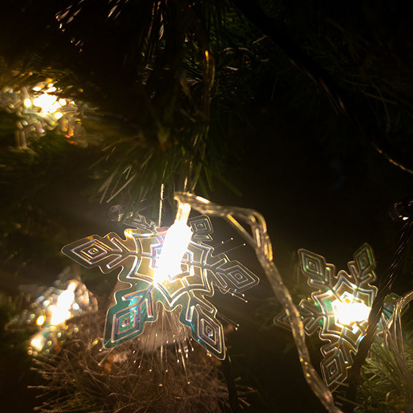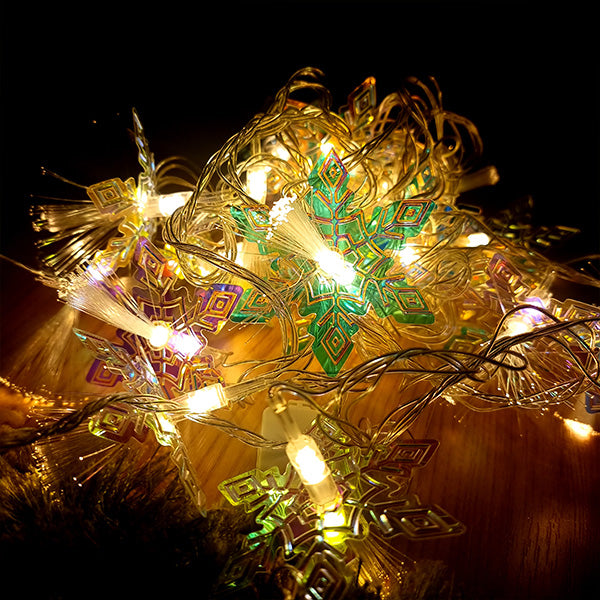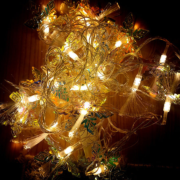 Instalația alb cald, model fulgi de zăpadă, cu o lungime de 5 metri, este o alegere excelentă pentru a crea o atmosferă de sărbătoare și confort.