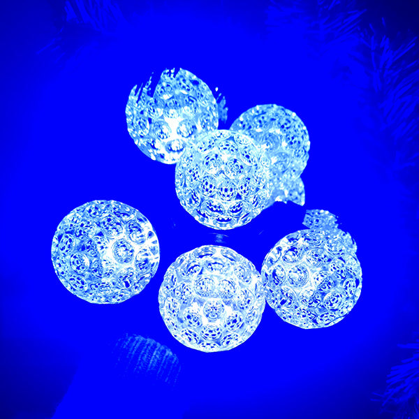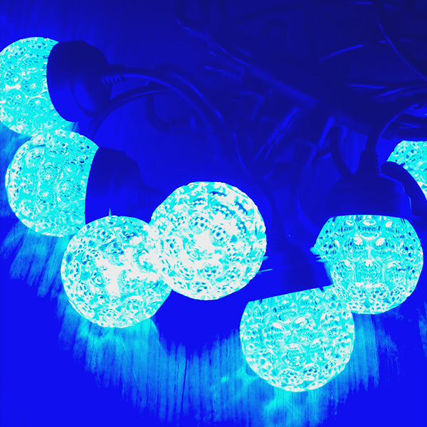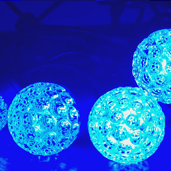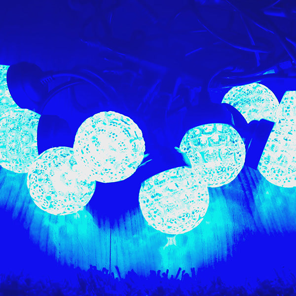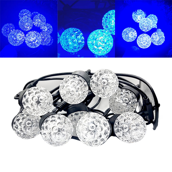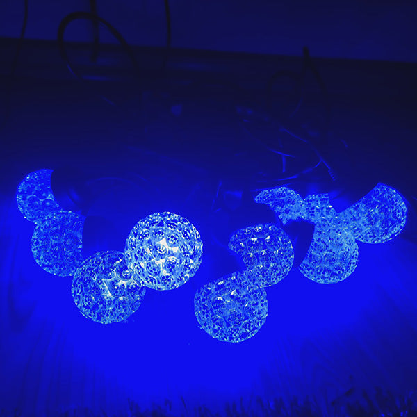 • Lumină strălucitoare: Fiecare glob emite o lumină albastra intensă, dar plăcută, ce conferă o atmosferă festivă.