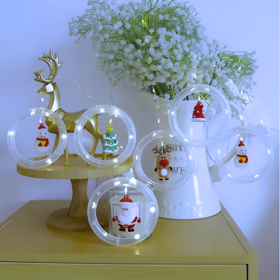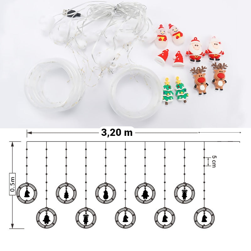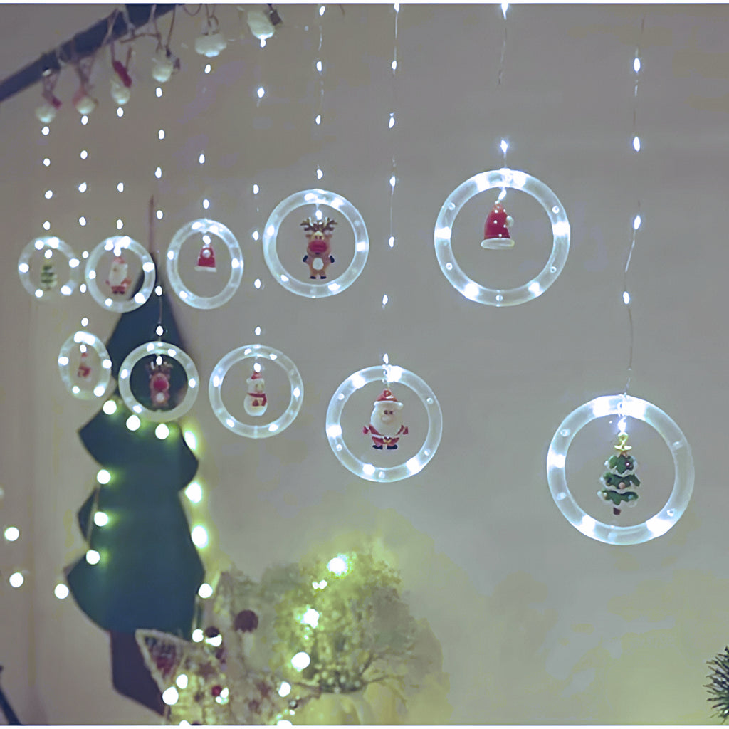 Pregateste-te din timp pentru sarbatori si decoreaza-ti locuinta cu stil si suprinde-ti oaspetii cu noua instalatie de Craciun tip perdea, cu inele LED cu Figurine Decorative.