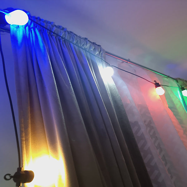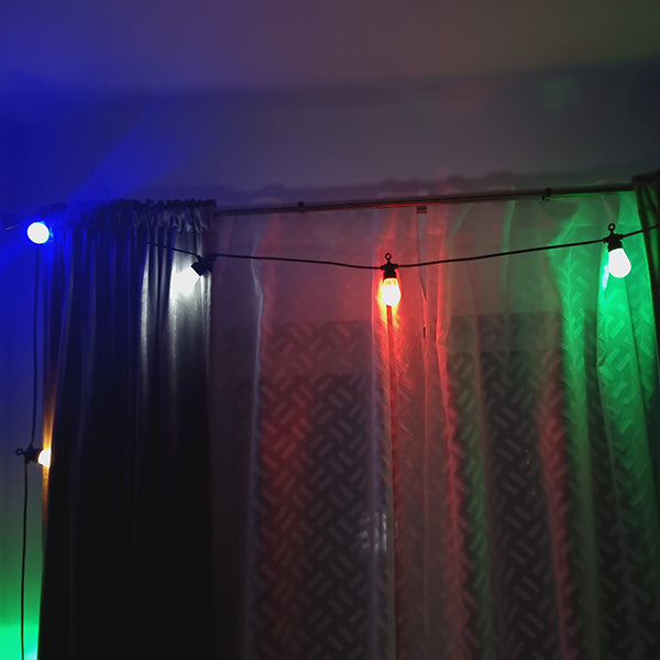 Instalația cu lumina multicoloră, având model de becuri mari, lungime de 5 metri și 20 de beculețe, este o alegere excelentă pentru a adăuga un accent de veselie și culoare decorului tău.