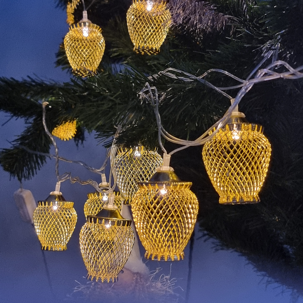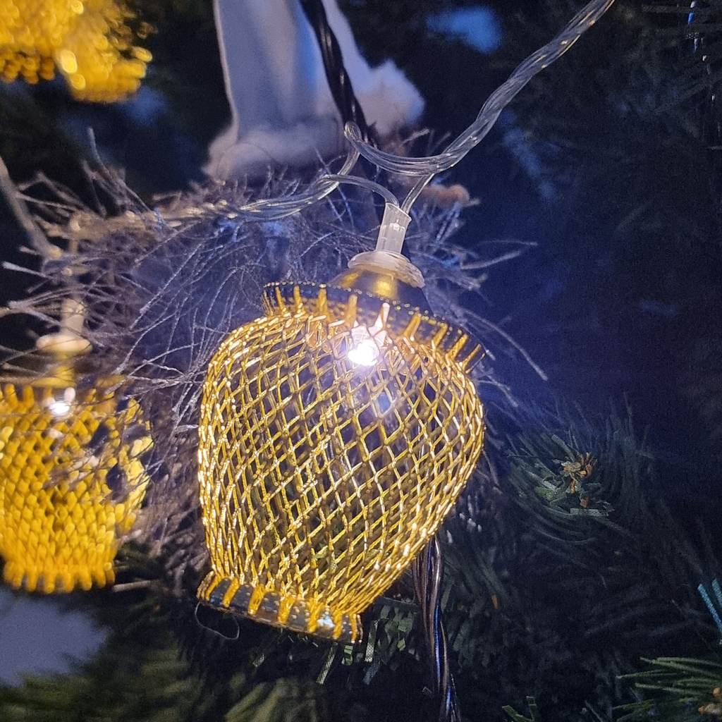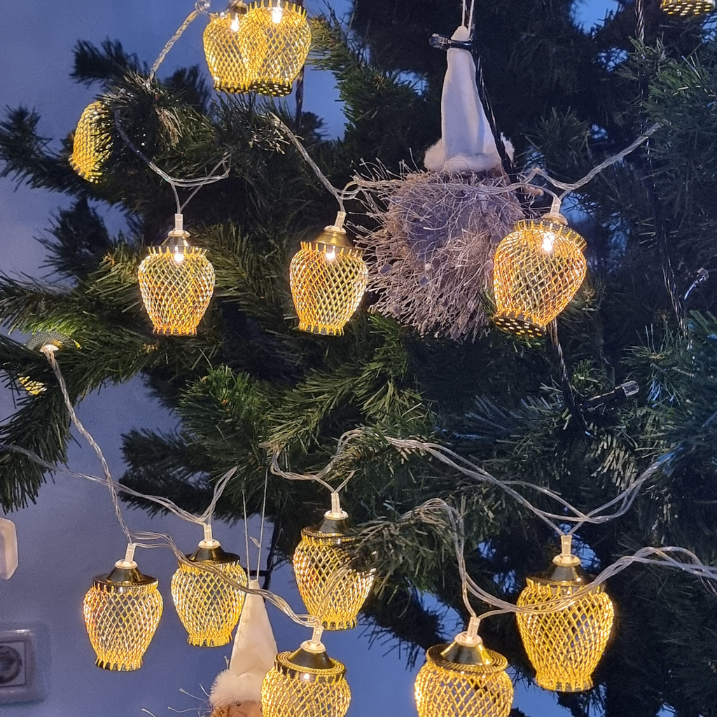 Instalatia este echipata cu 20 globuri aurii si include LED-uri cu lumina alba calda, relaxanta si odihnitoare. Acest produs se alimenteaza la 220V, are un grad de protectie de IP20, ce recomanda utilizarea la interior, iar transformatorul este inclus.