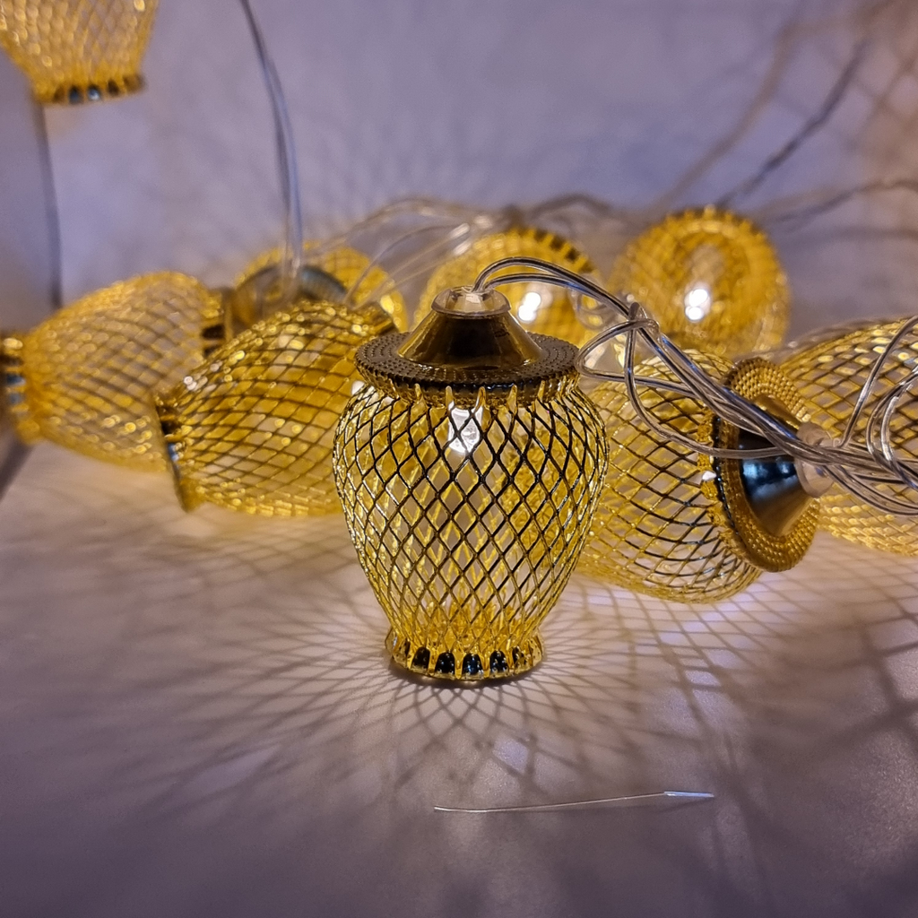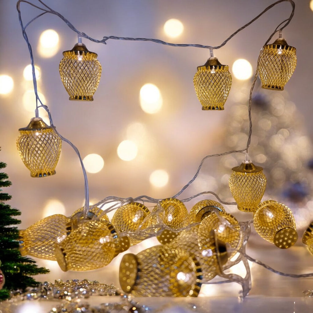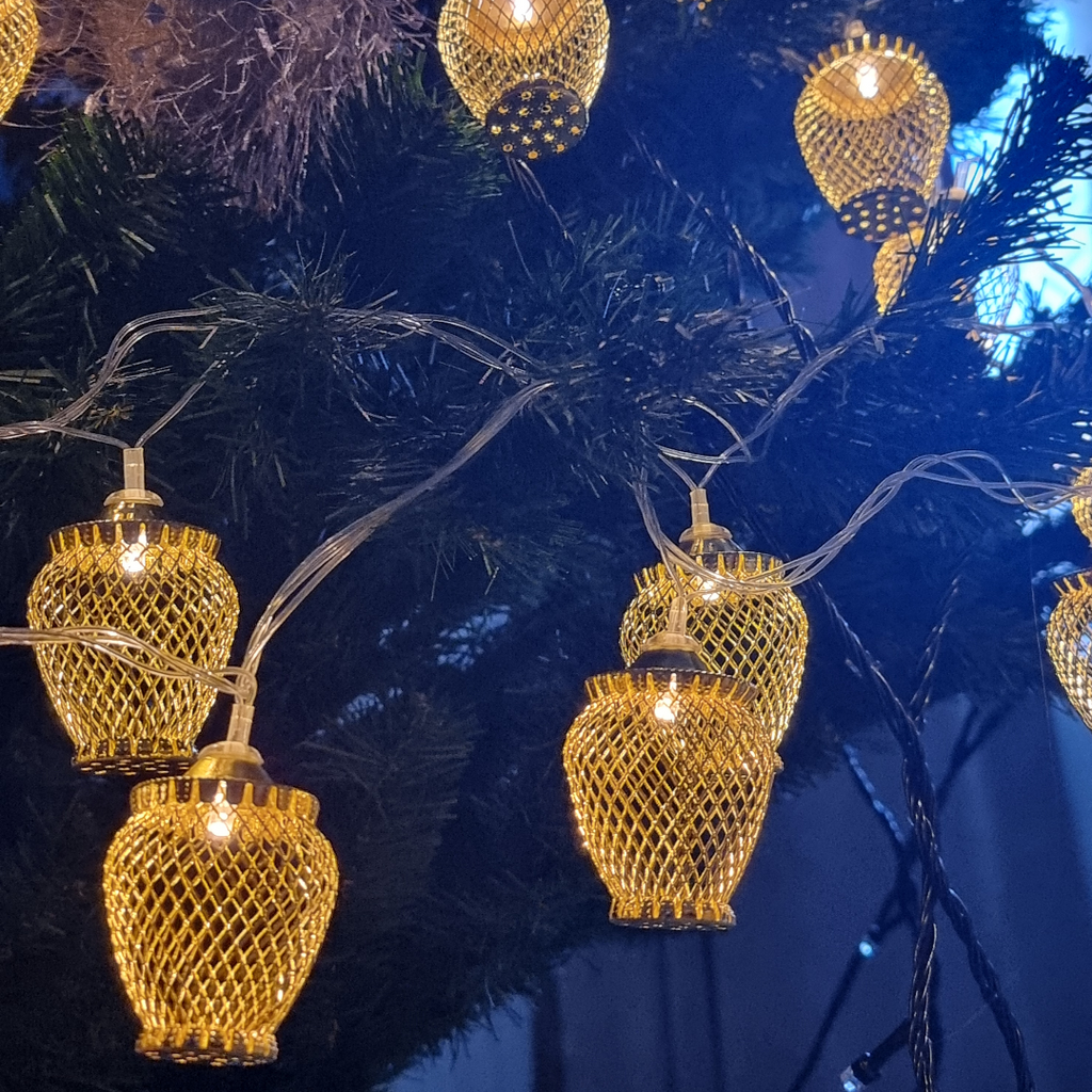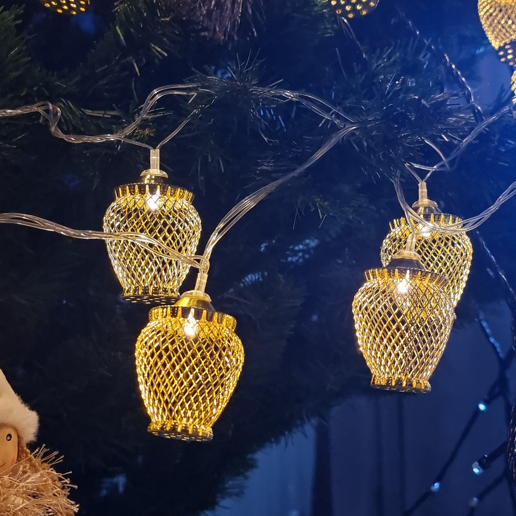 Instalatia este echipata cu 20 globuri aurii si include LED-uri cu lumina alba calda, relaxanta si odihnitoare. Acest produs se alimenteaza la 220V, are un grad de protectie de IP20, ce recomanda utilizarea la interior, iar transformatorul este inclus.