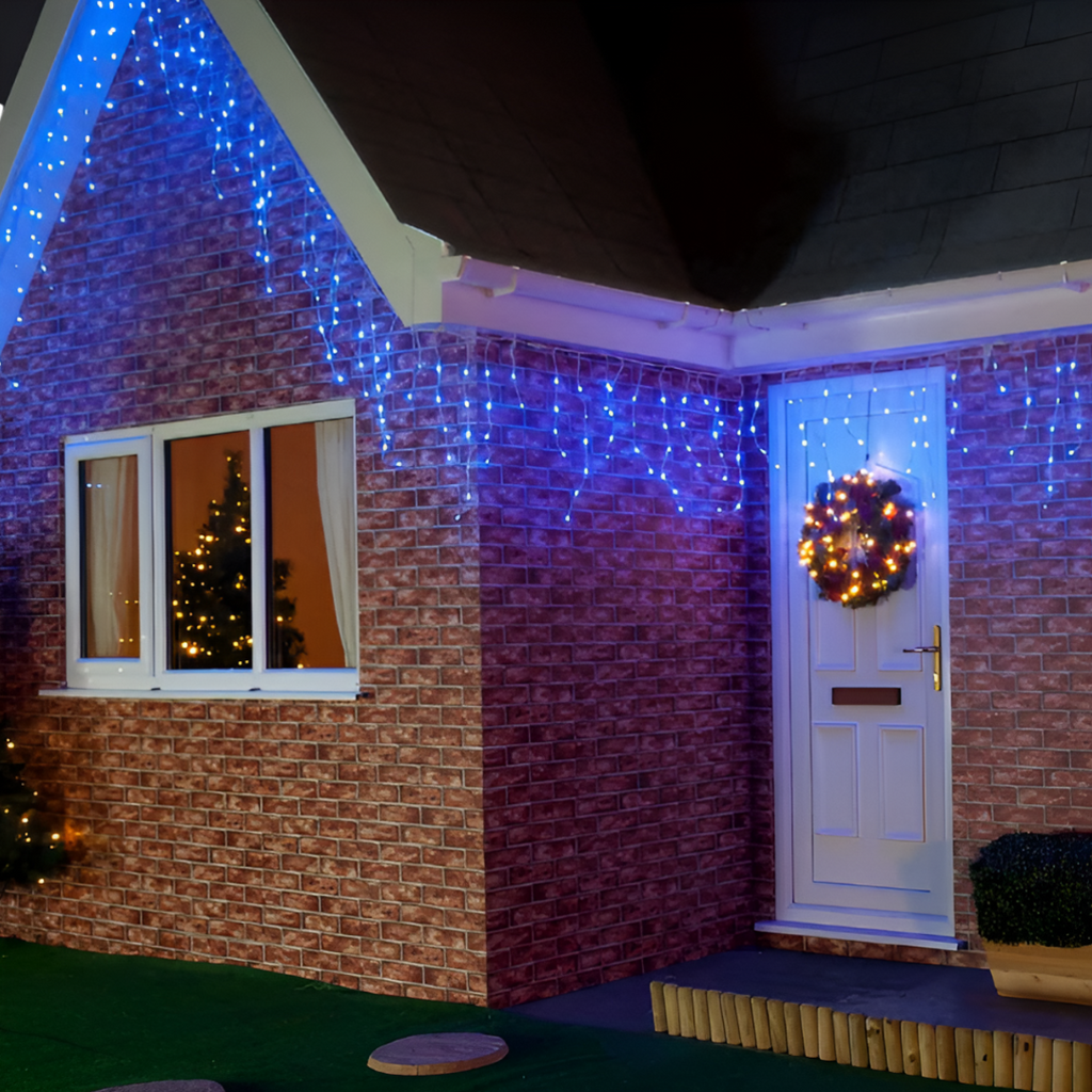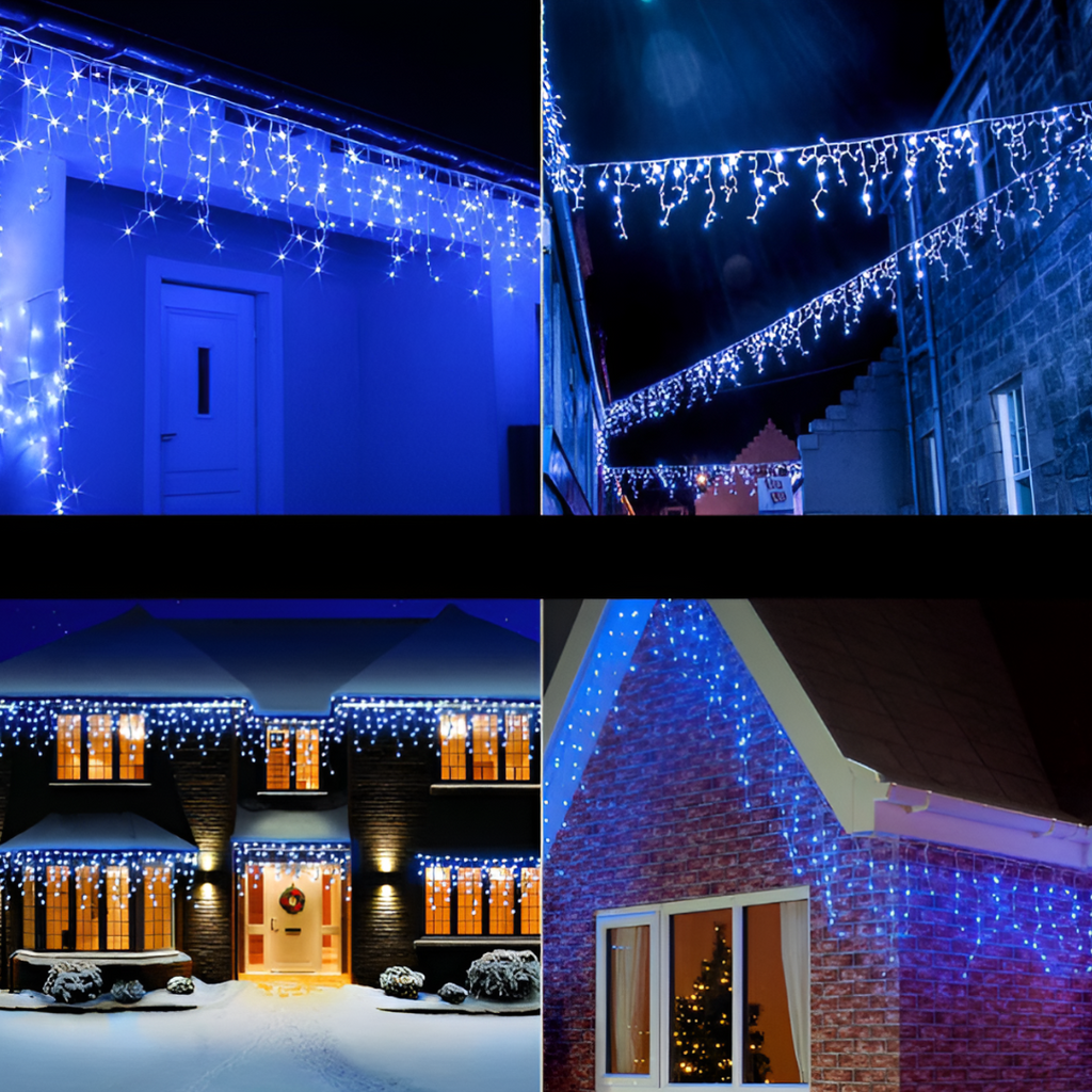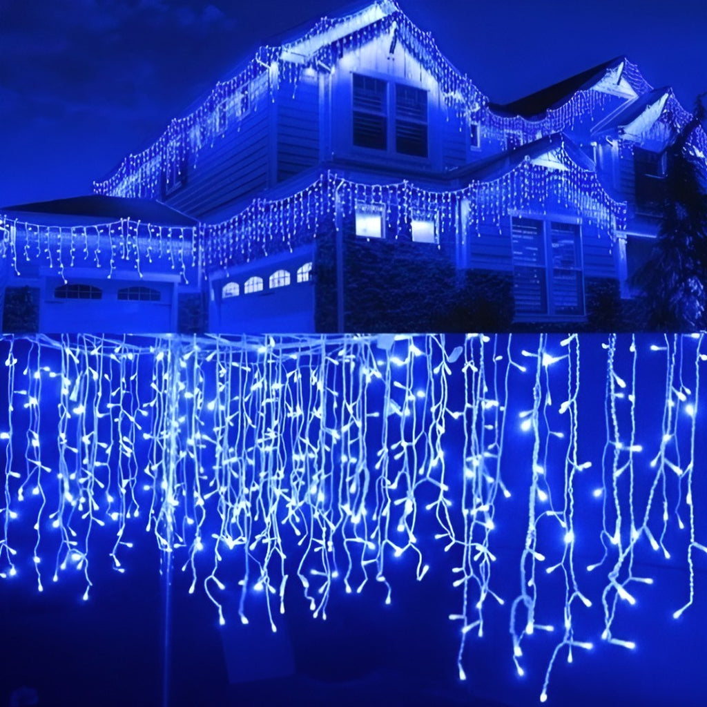 Instalatia led cu franjuri 12m , de exterior, albastra