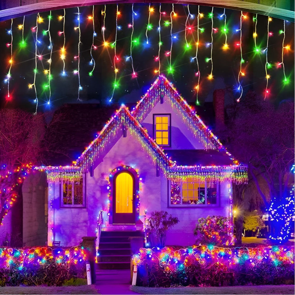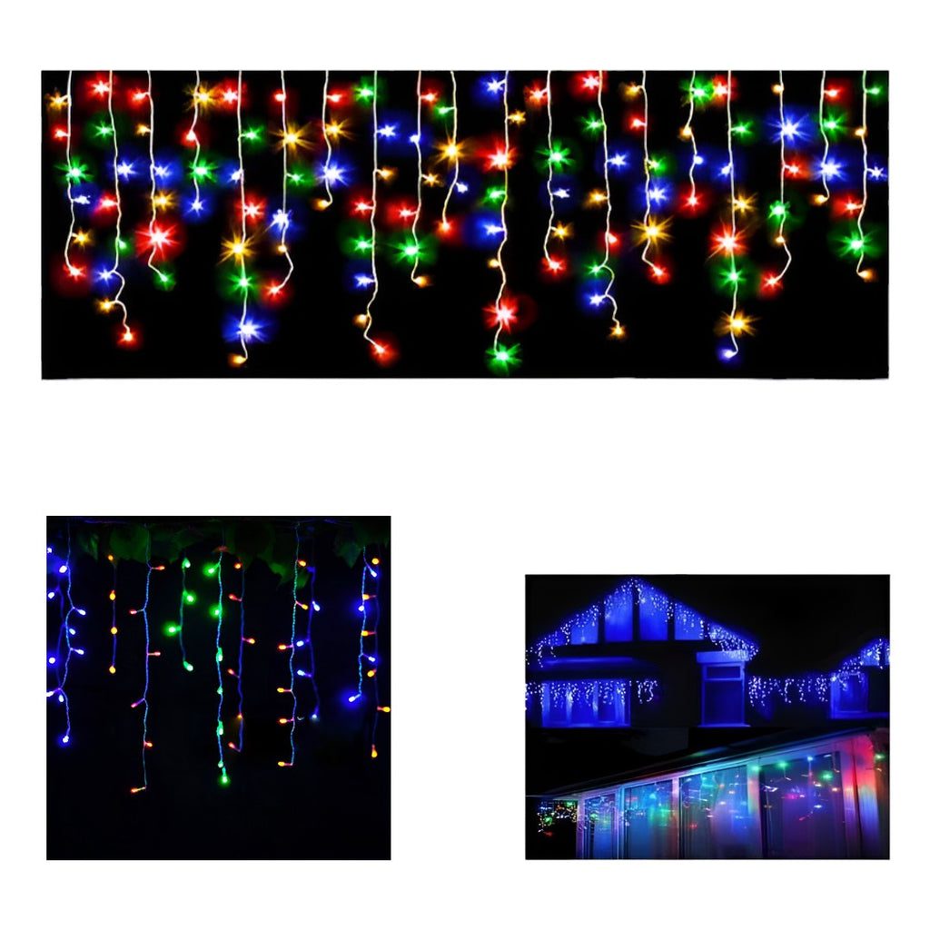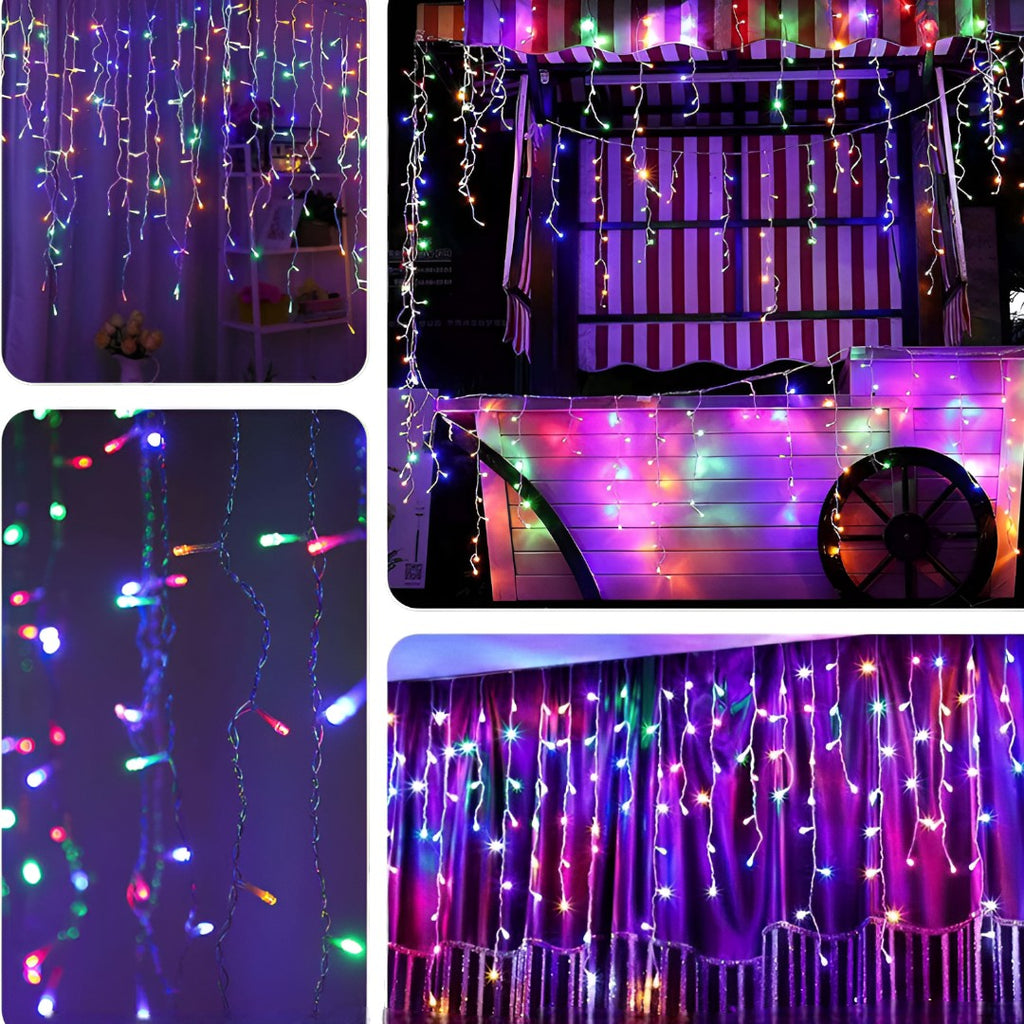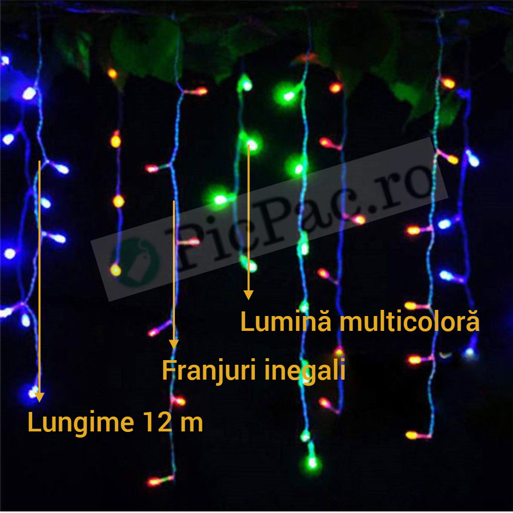 Instalatie cu 300 de led-uri pentru Craciun, foarte frumoasa, stil perdea de franjuri inegali cu led , lungime 12 m. Rezistenta la inghet, efect luminos deosebit, cu 8 jocuri diferite de lumini.