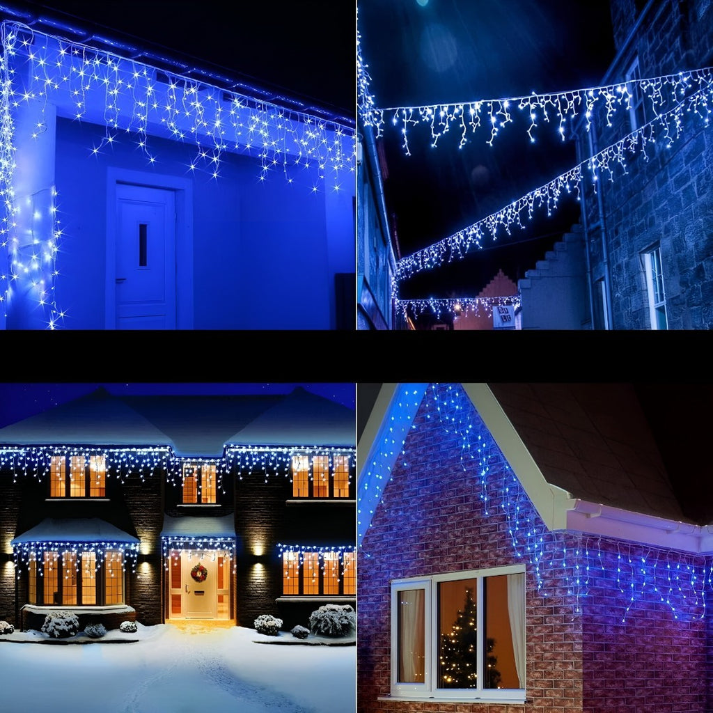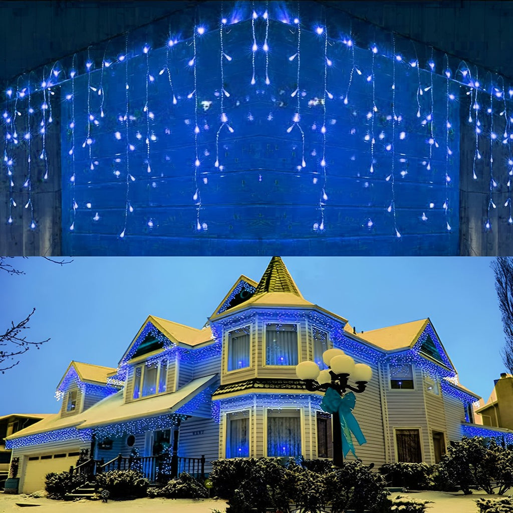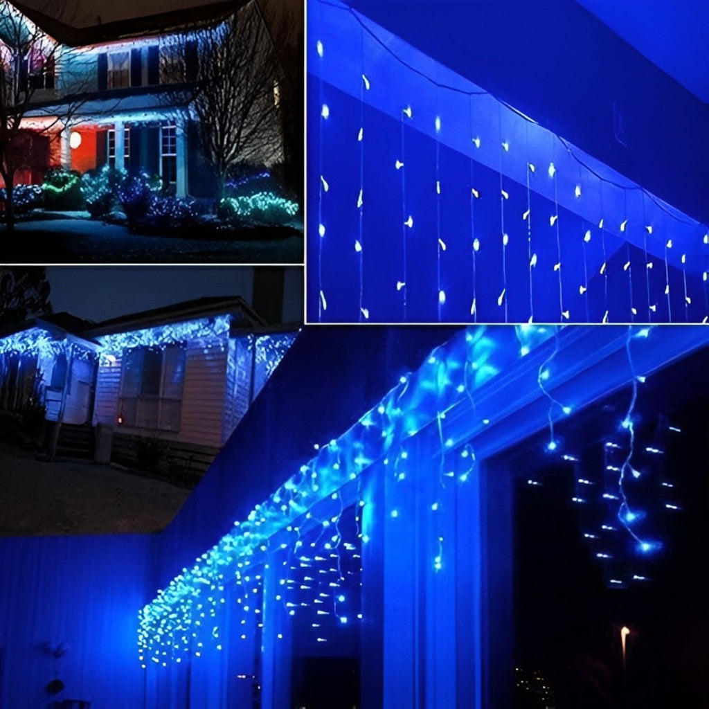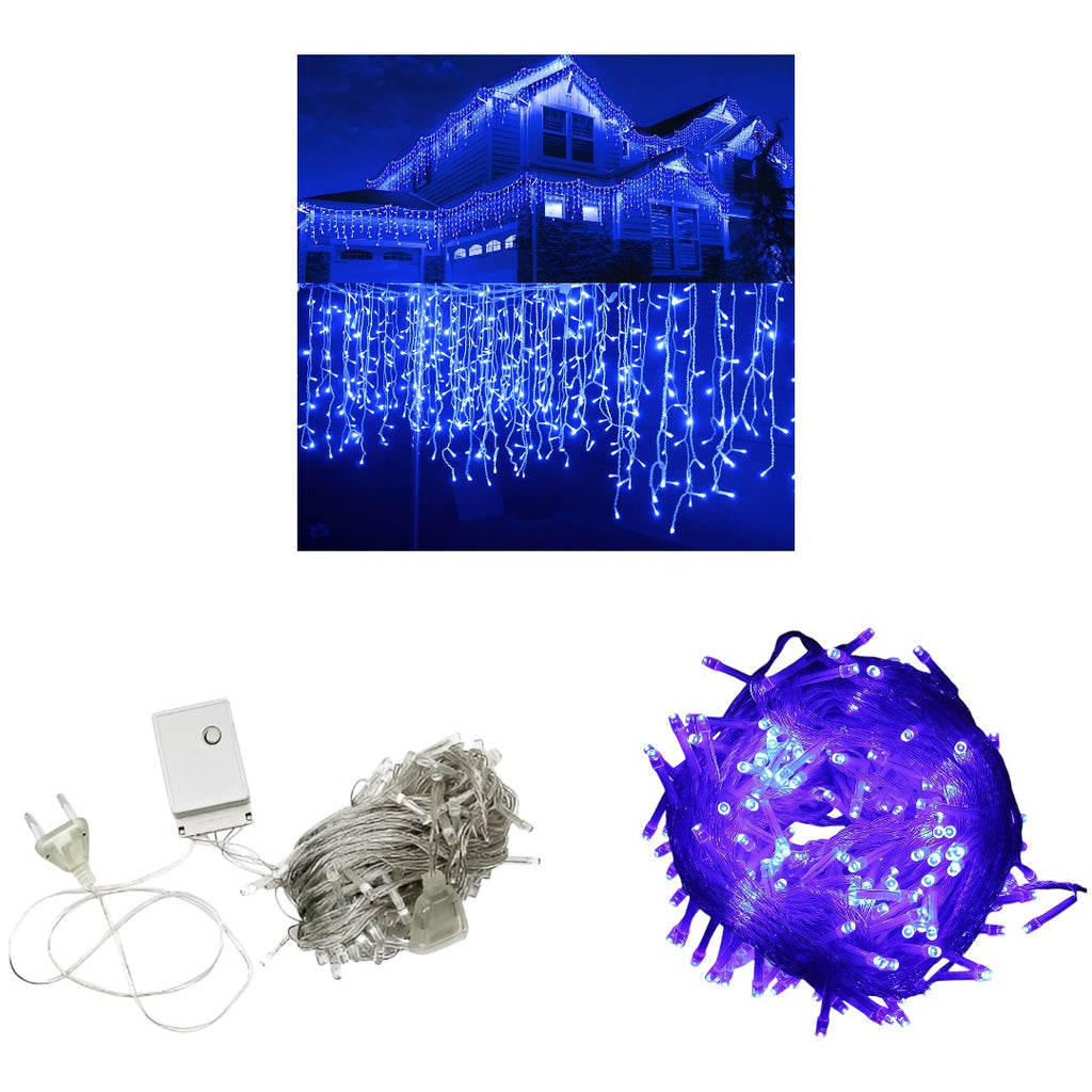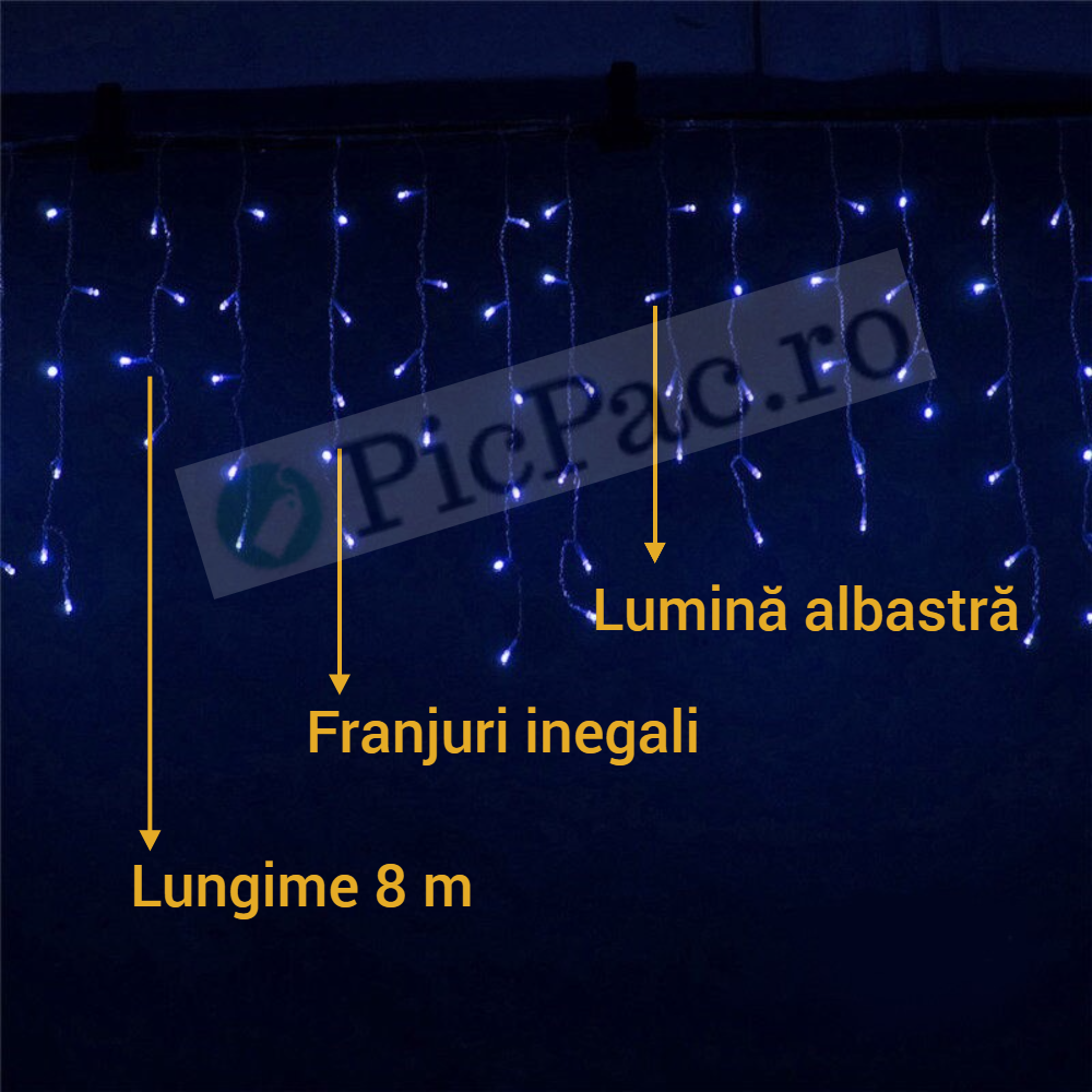 Instalatie led cu franjuri, de exterior, albastra, 200 de beculete, 8m lungime, foarte rezistenta, cu joc de lumini