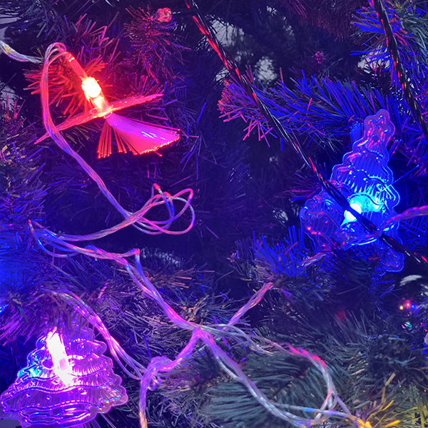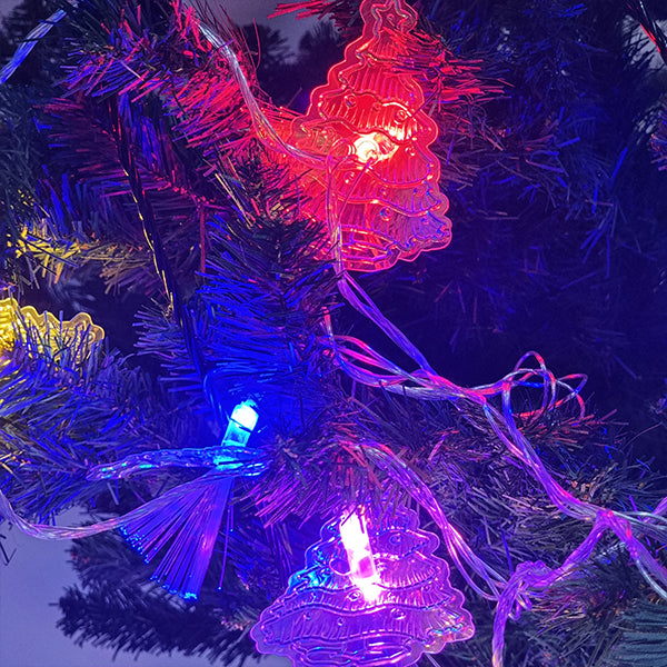 Instalația multicoloră cu model de brazi este o alegere populară pentru decorarea sărbătorilor de iarnă.