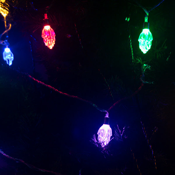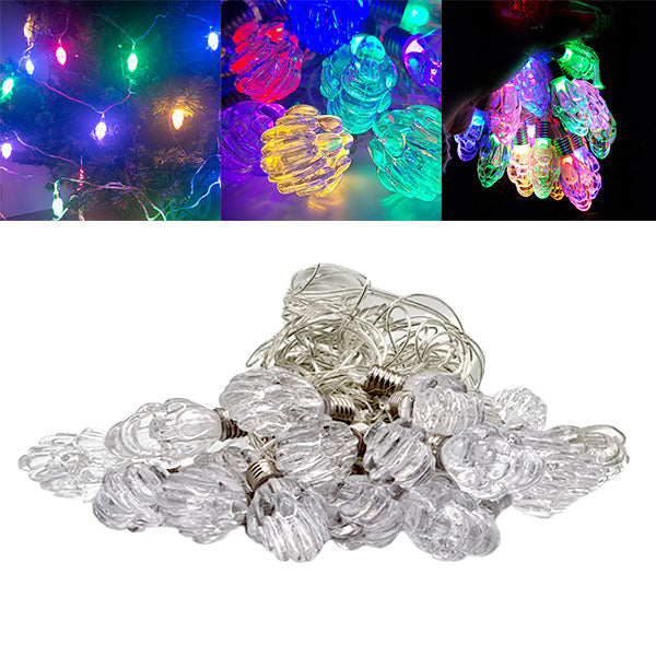 Instalația cu lumina multicoloră, având model de conuri, lungime de 5 metri și 20 de beculețe, este o alegere vibrantă și festivă pentru decorarea spațiilor.
