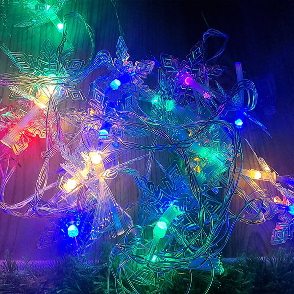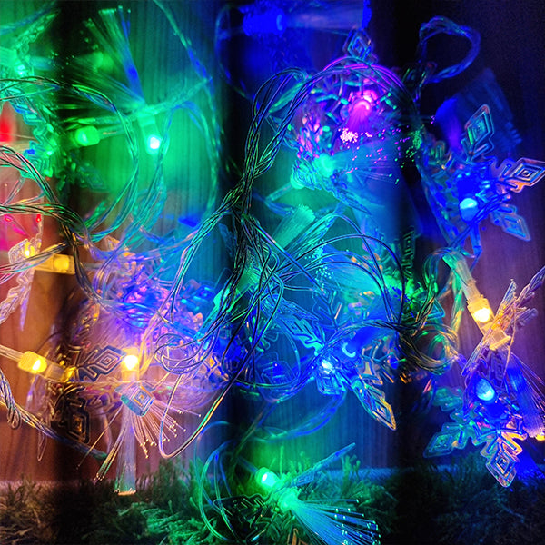 Instalațiile multicolore cu model de fulgi de zăpadă sunt adesea utilizate pentru a crea o atmosferă festivă, în special în perioada sărbătorilor de iarnă.