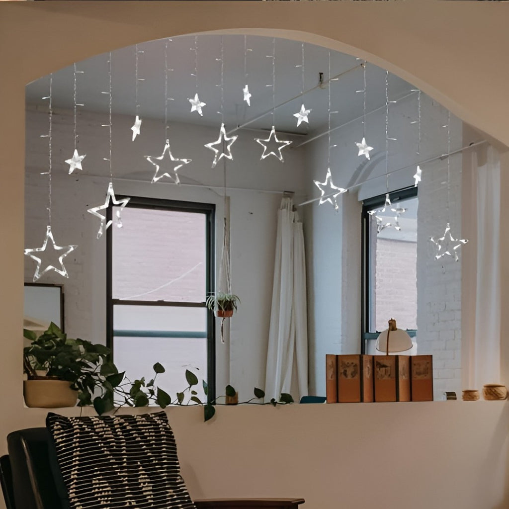 Instalatie Craciun - perdea luminoasa ploaie 12 stele