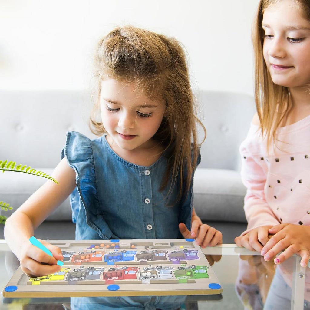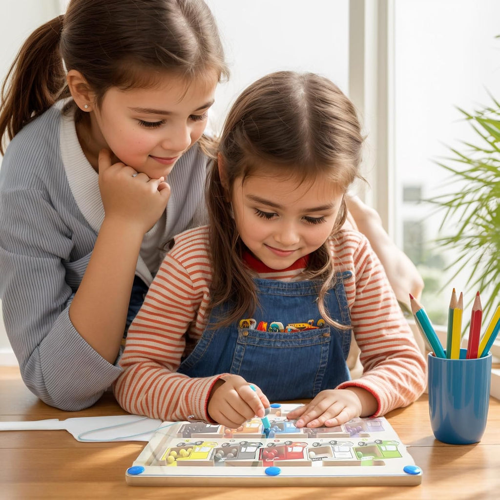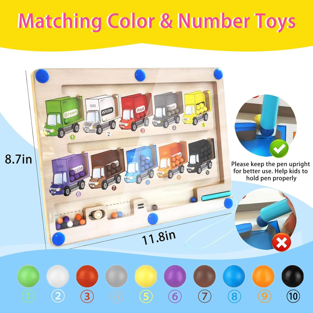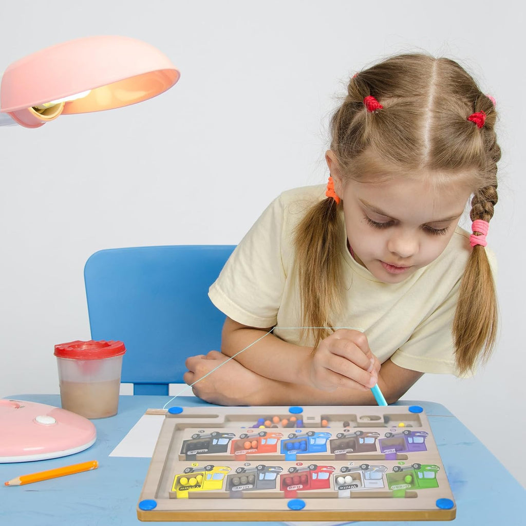 Învățare inspirată de Montessori: Tabla magnetică labirint este o modalitate distractivă pentru copii de a învăța și exersa numărătoarea, recunoașterea culorilor, coordonarea ochi-mână și abilitățile motorii fine. Menține copiii angajați ore întregi. Precizia necesară pentru a muta plăcile în labirint ajută la dezvoltarea flexibilității și controlului, punând bazele unor abilități motorii mai avansate în viitor.