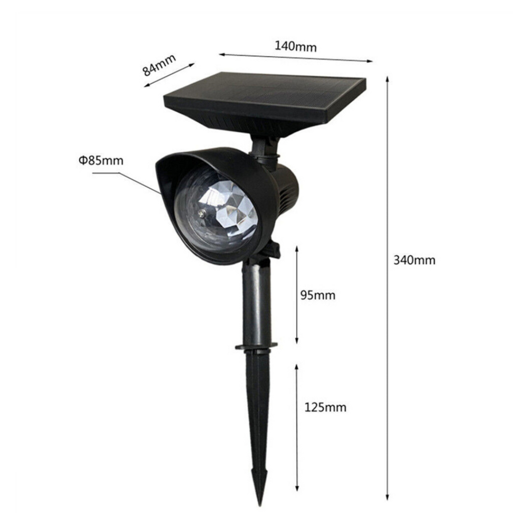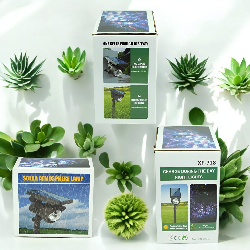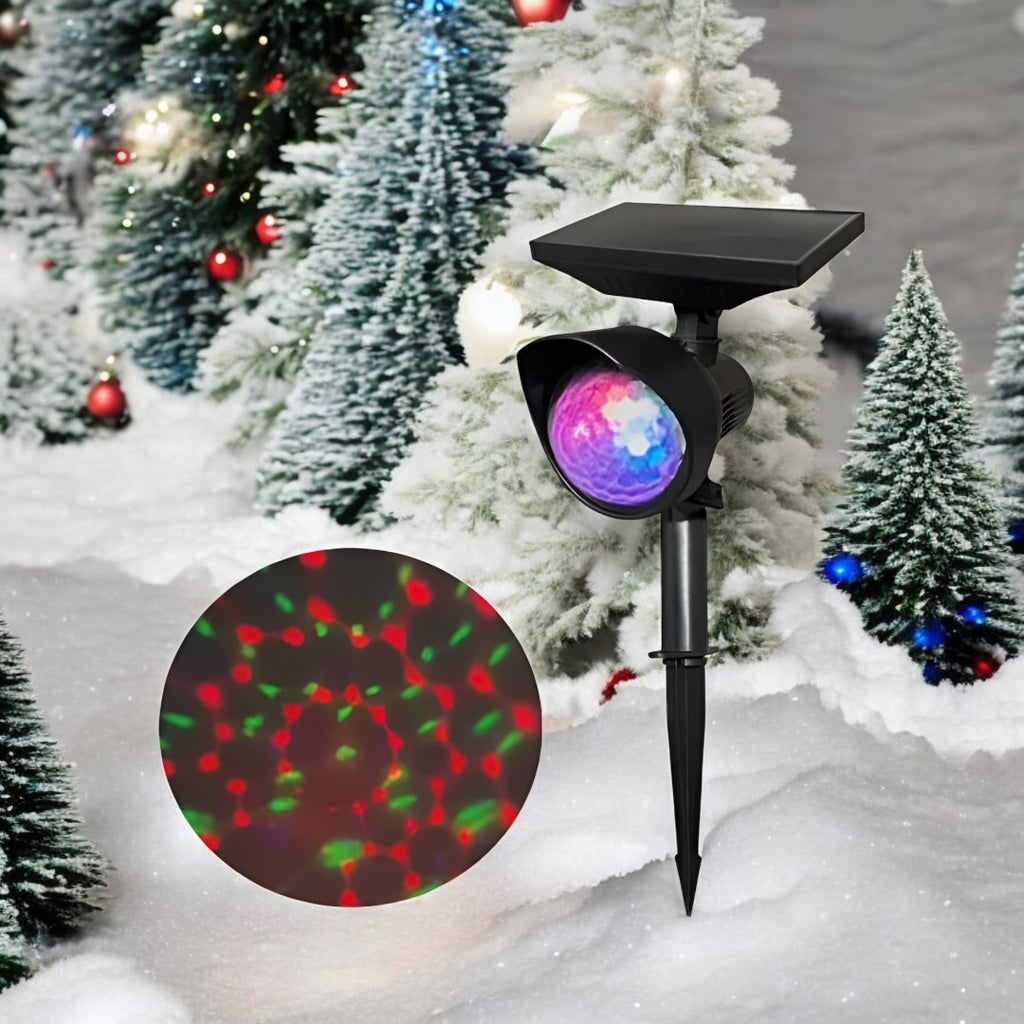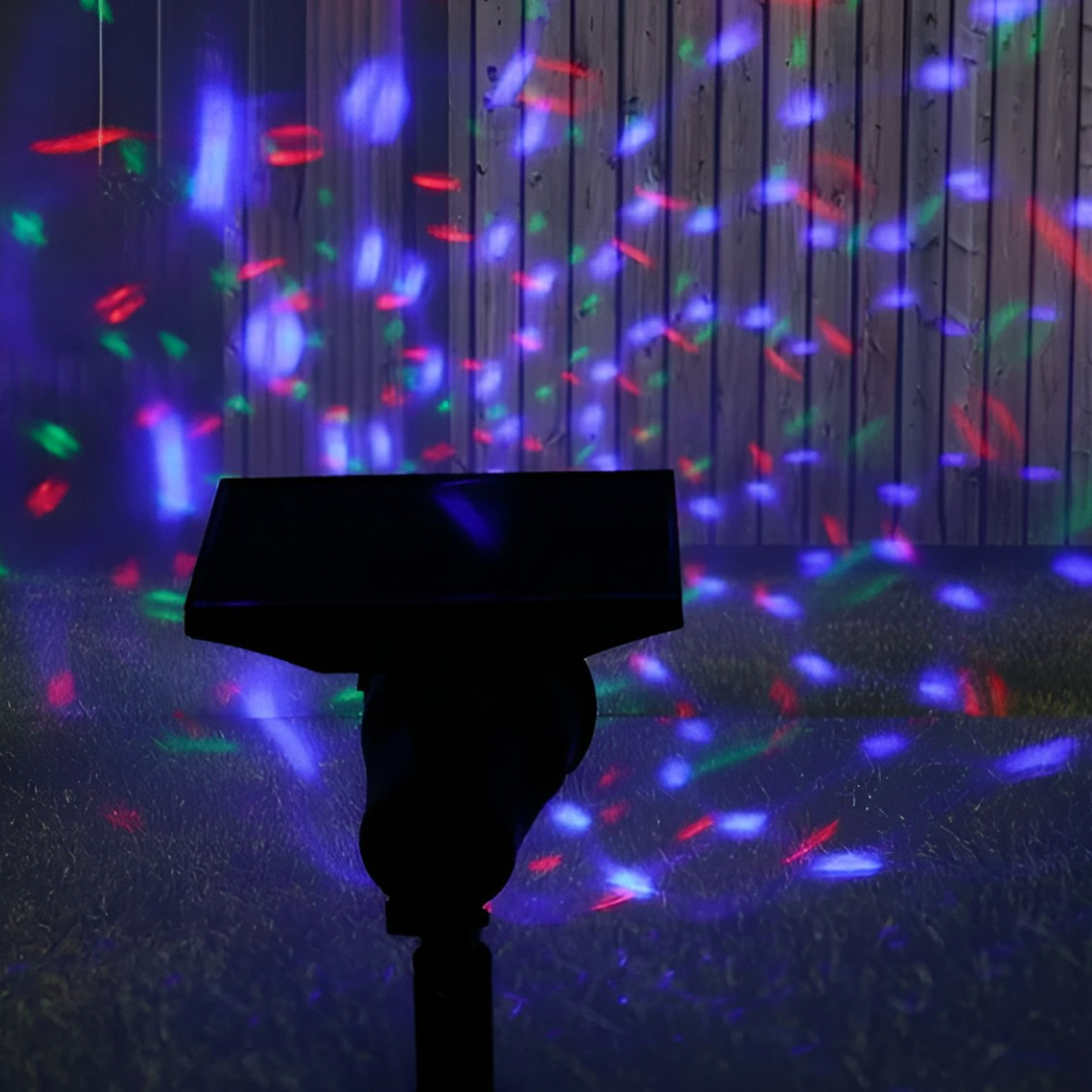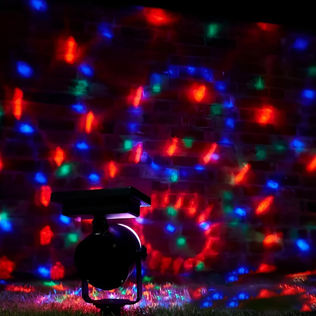 Acesta este un proiector de exterior cu alimentare solară, conceput pentru a ilumina și decora grădina sau spațiul exterior. Proiectorul pare să fie rezistent la apă și să ofere iluminare colorată, ceea ce îl face ideal pentru decorarea exterioară în diverse ocazii, cum ar fi sărbători, petreceri sau pur și simplu pentru a crea o atmosferă plăcută în curte.