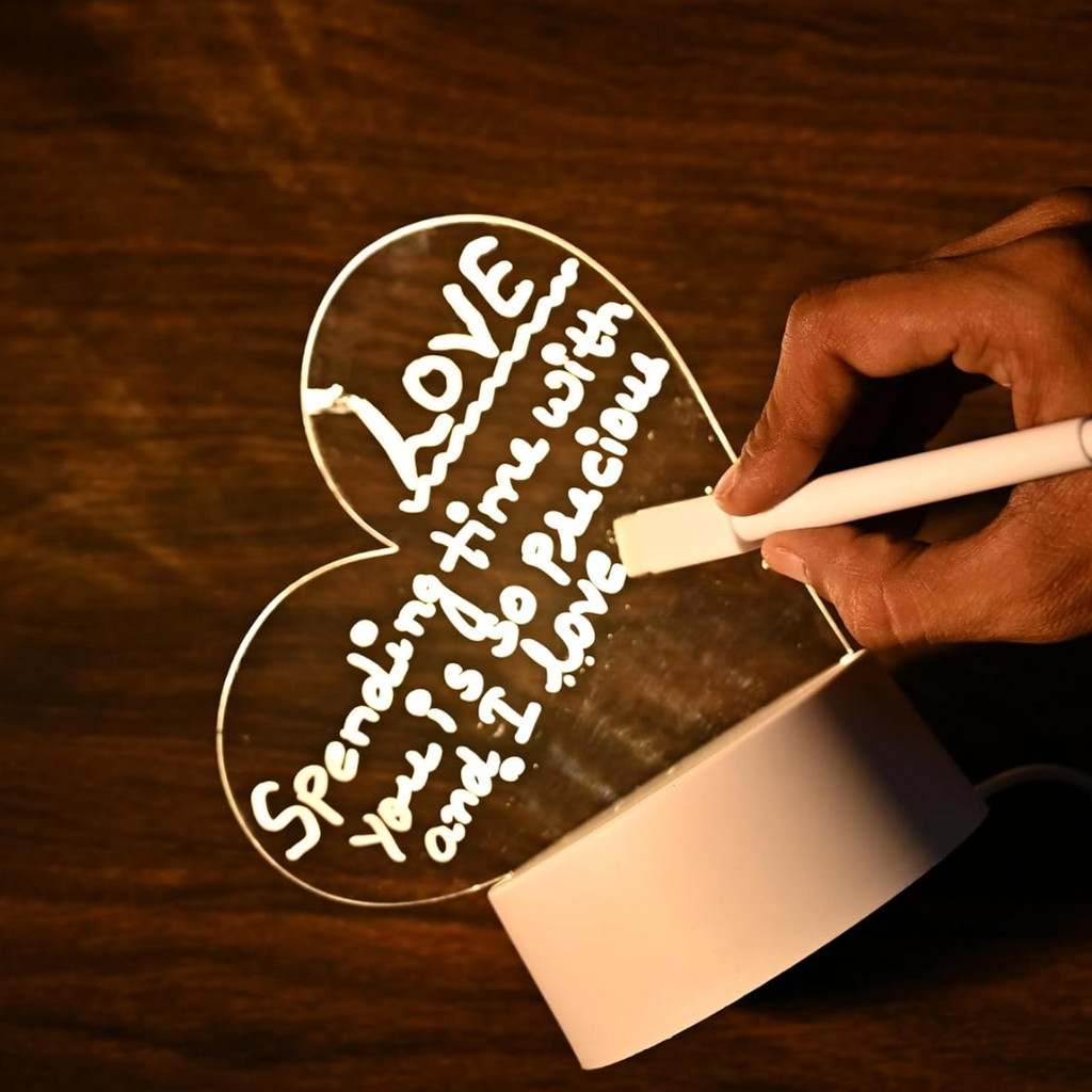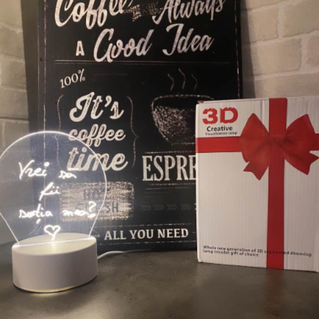 Pe aceasta lampa puteti scrie, folosind markerul din pachet si se sterge cu usurinta folosind materialul din microfibra cu care se recomanda sa stergeti sticla din Plexiglass (inclus in pachet).