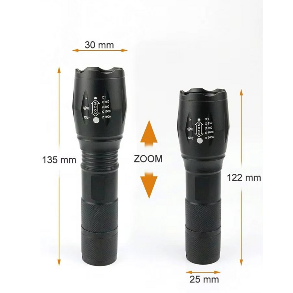 Lanterna tactica cu Zoom, rezistenta la apa, 3 moduri iluminare, negru