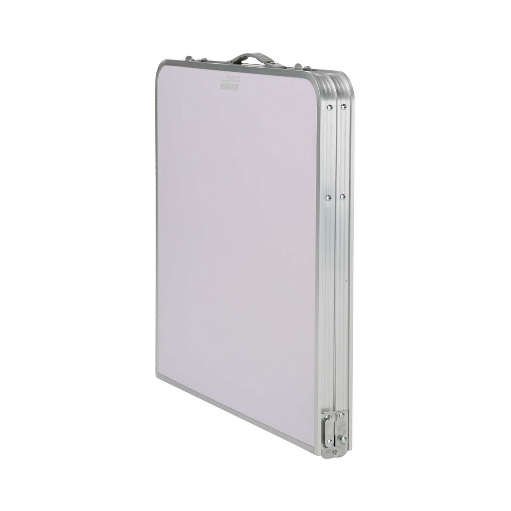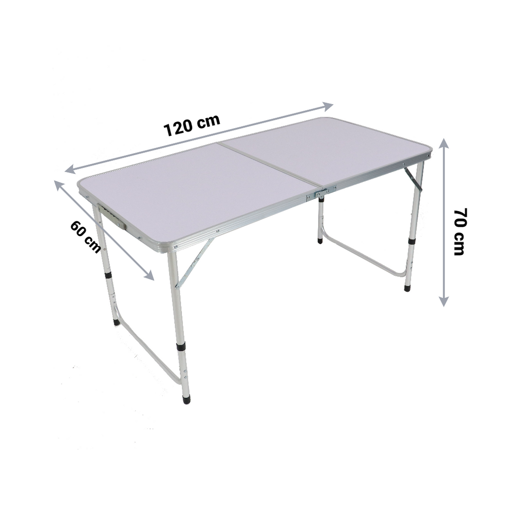 Masa se poate plia, pentru a putea fi transportata cu usurinta. Inaltimea mesei poate fi ajustata in 2 pozitii.