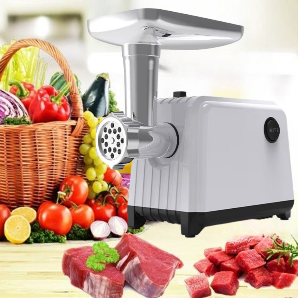 Mașină de tocat carne electrică MGD 2000W – putere mare, 3 site, funcție reverse, accesorii incluse, alb