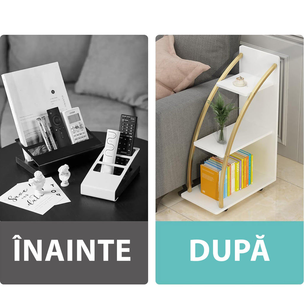 Designul său modern și versatil permite integrarea ușoară în orice încăpere, iar cele 3 blaturi oferă un spațiu suplimentar de depozitare pentru diverse obiecte decorative, băuturi sau alte accesorii esențiale. Blaturile din PVC sunt durabile, ușor de întreținut și rezistente la uzură, iar structura elegantă completează perfect orice stil de amenajare. Ideală pentru a adăuga un accent chic și practic în living, birou sau orice alt spațiu.