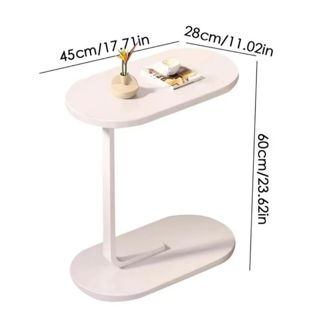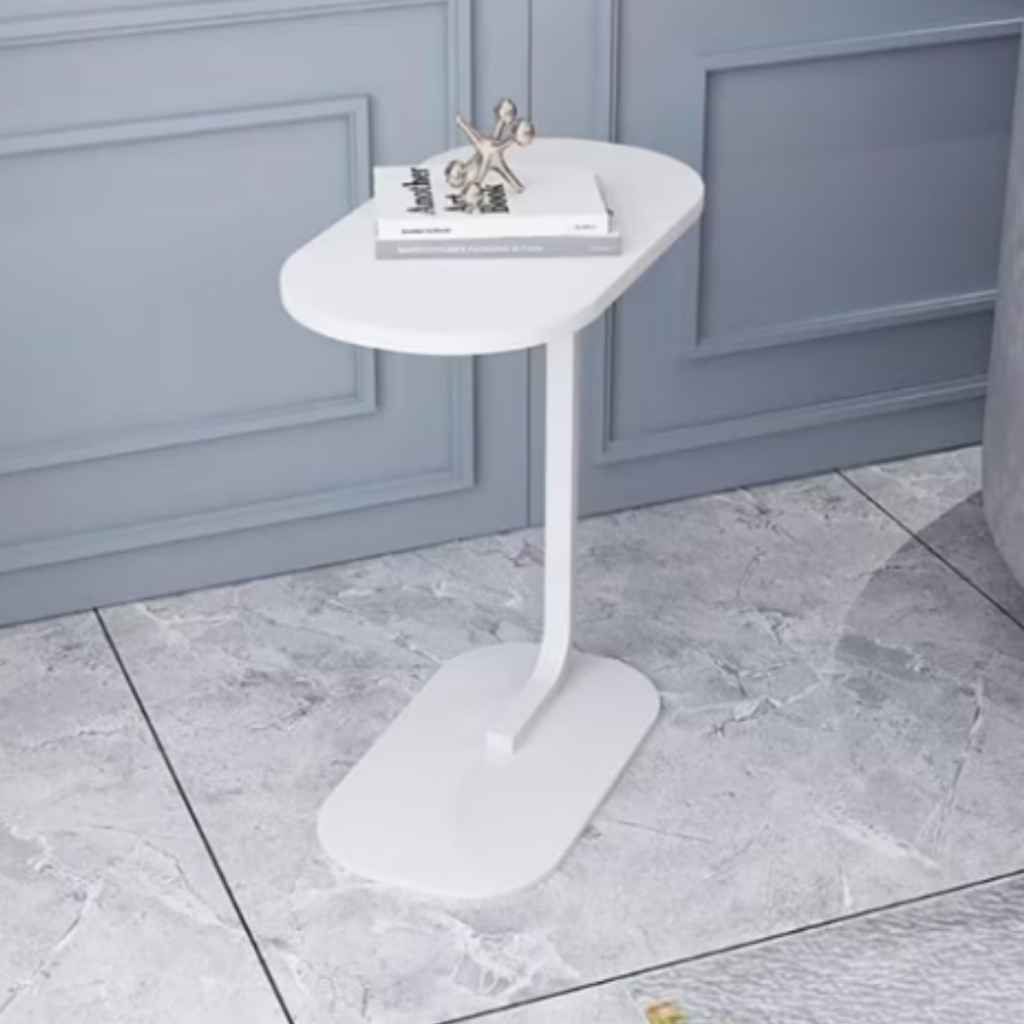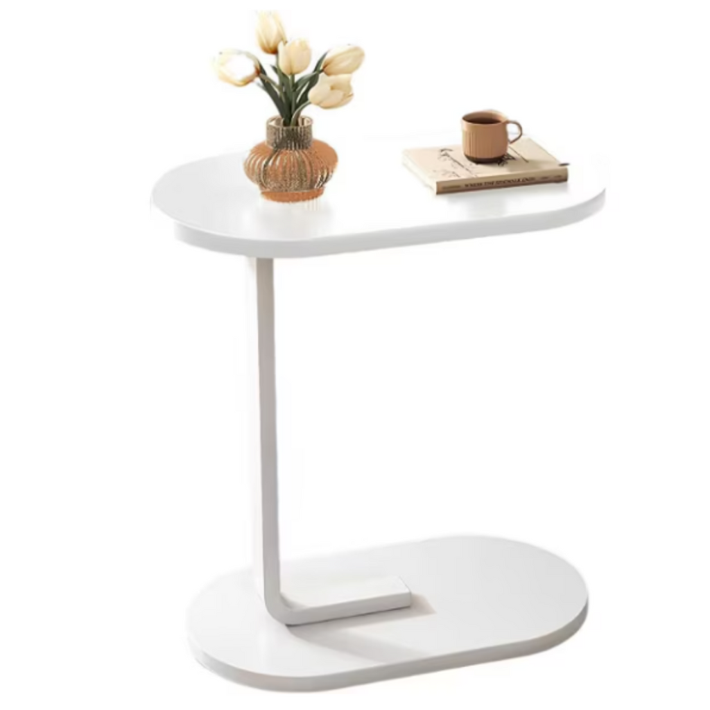 Măsuță laterală ovală pentru living – portabilă, durabilă, integral albă – 45x28x60 cm