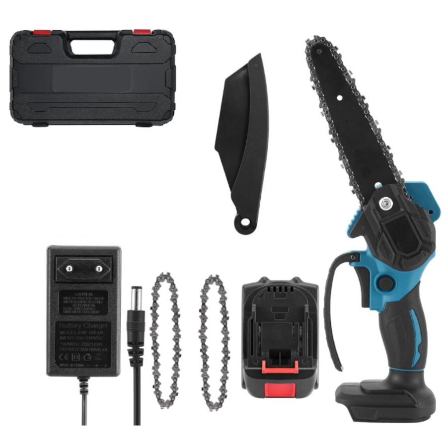 O mini drujbă cu 2 lanturi, fără fir, lama de 6 inch / 15.24 cm