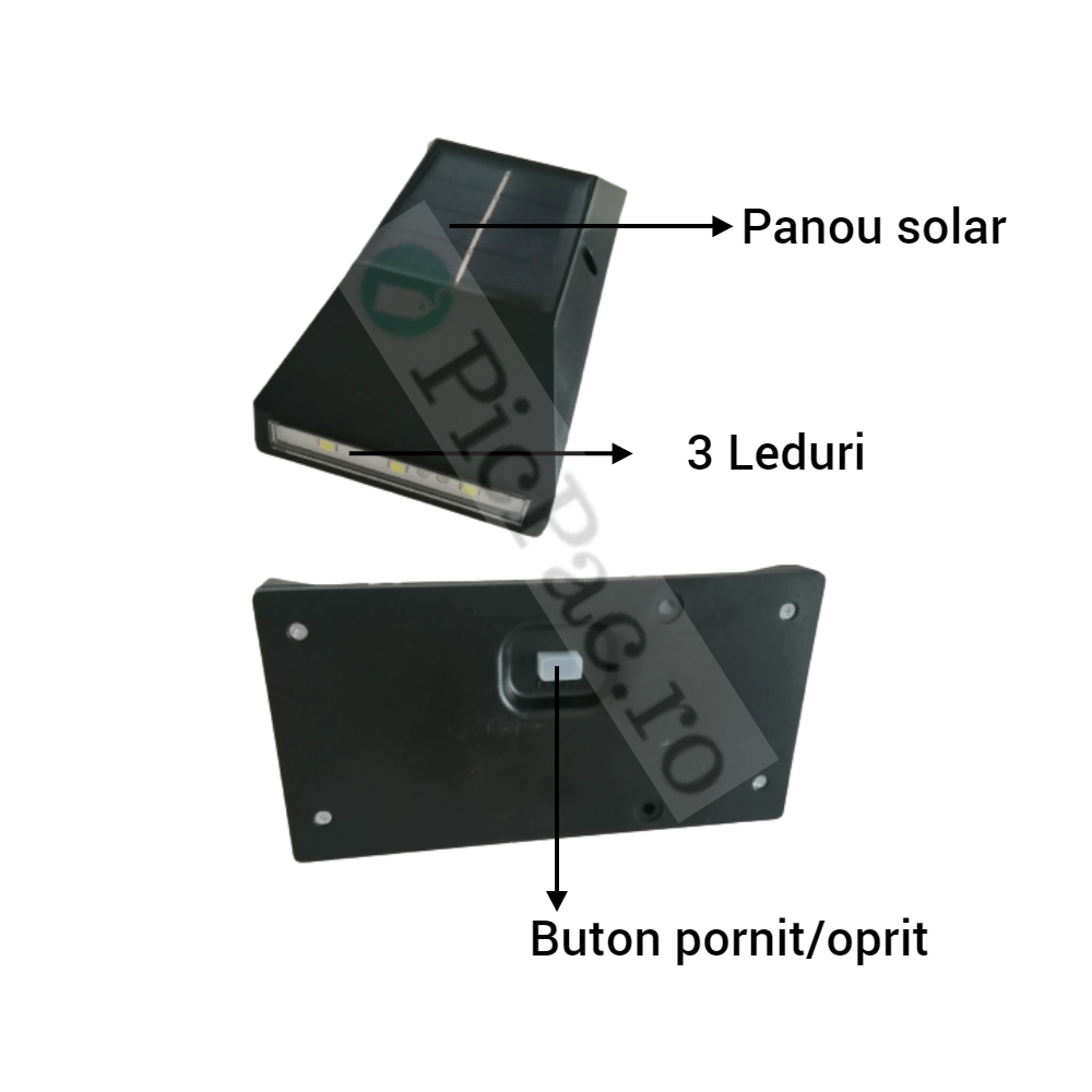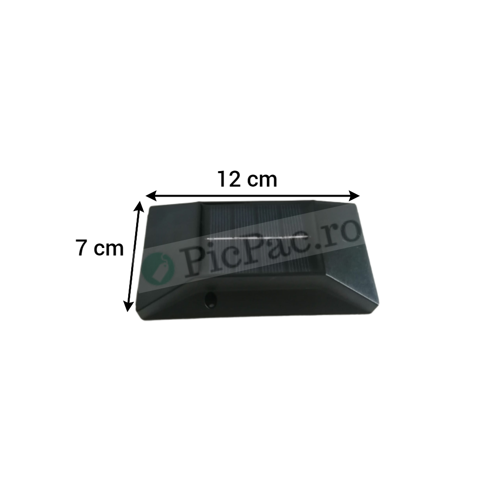 Se aprinde cand senzorul detecteaza msicare Material: Plastic si ABS Culoare: Negru Cum functioneaza? Cand il folositi pentru prima data, lasati-l cateva ore in lumina puternica a soarelui. Pe timpul zilei se sting si incep sa se incarce automat. Pentru a functiona si pe timpul zilei, trebuie sa acoperi panoul solar. Daca nu il folositi vreme indelungata, trebuie oricum incarcat in fiecare luna. Functionalitatea lampii depinde de vreme si de cat de puternic straluceste soarele. Pachetul contine: - 2 lampi - dibluri