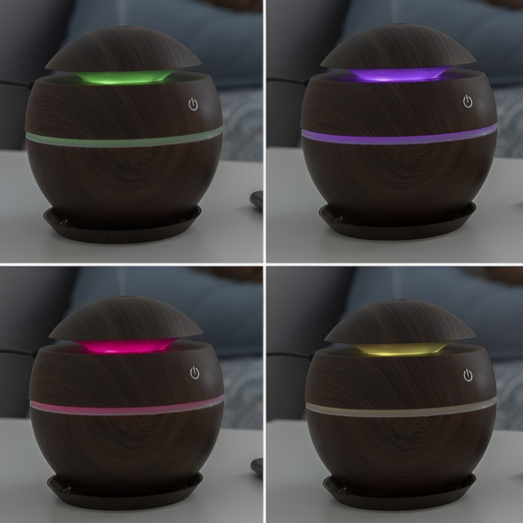 Buton tactil: pornit/oprit Capacitate: 130 ml Ultrasonic Silentios Succesiune LED multicolora Functie dubla: imbunatateste calitatea aerului si aromatizeaza atmosfera Lunga durata: 7 h Pulverizare: 30 ml/h 500 mA / 5 V / 2 W Functioneaza cu conexiune USB (include cablu DC-USB) Oprire automata atunci cand se termina apa Nu include uleiuri esentiale Dimensiuni aprox.: 10 x 10 cm