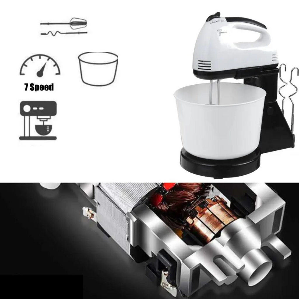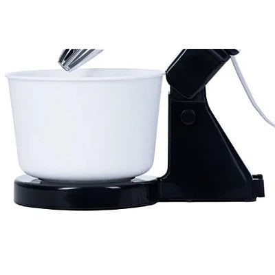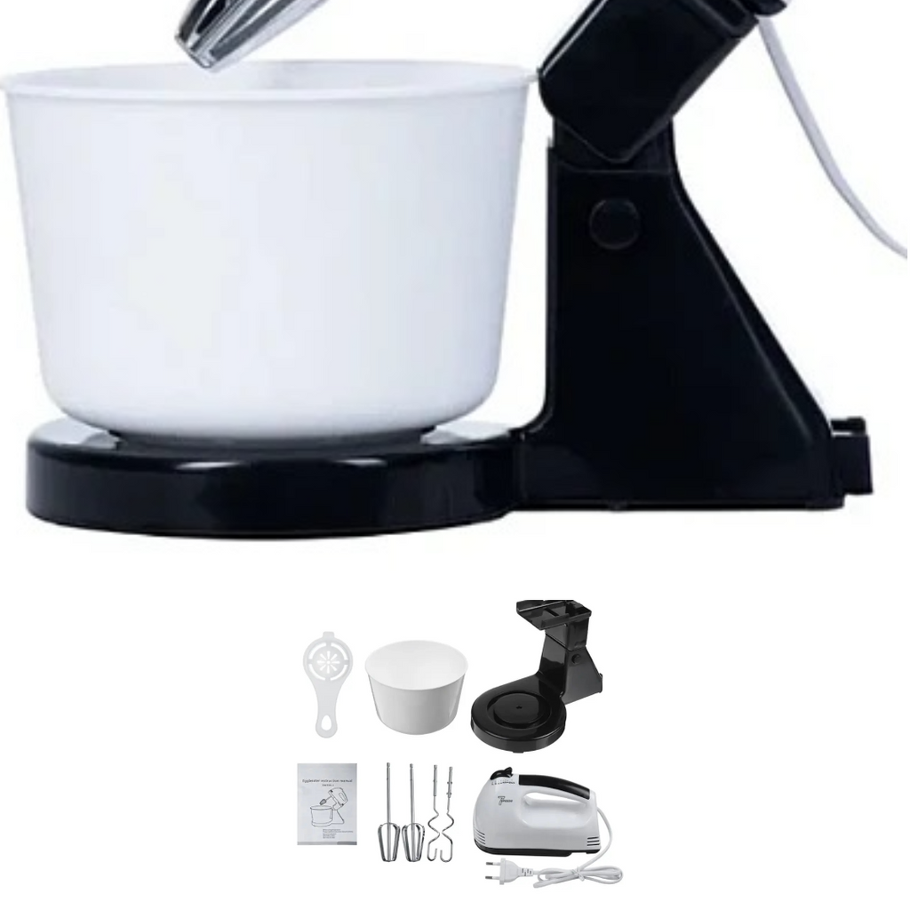 In comparatie cu mixerul obisnuit, de mana, acesta are o baza stabila si un bol cu o capacitate de 2 litri.
