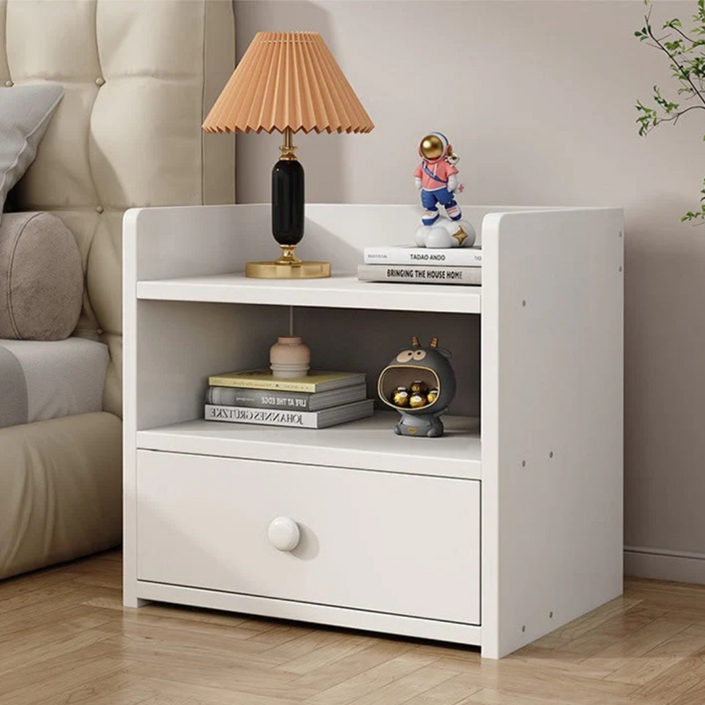 - Funcționalitate maximă: Fie că vrei să ai cartea preferată la îndemână, să păstrezi încărcătorul telefonului aproape sau să organizezi alte accesorii, această noptieră este soluția ideală.