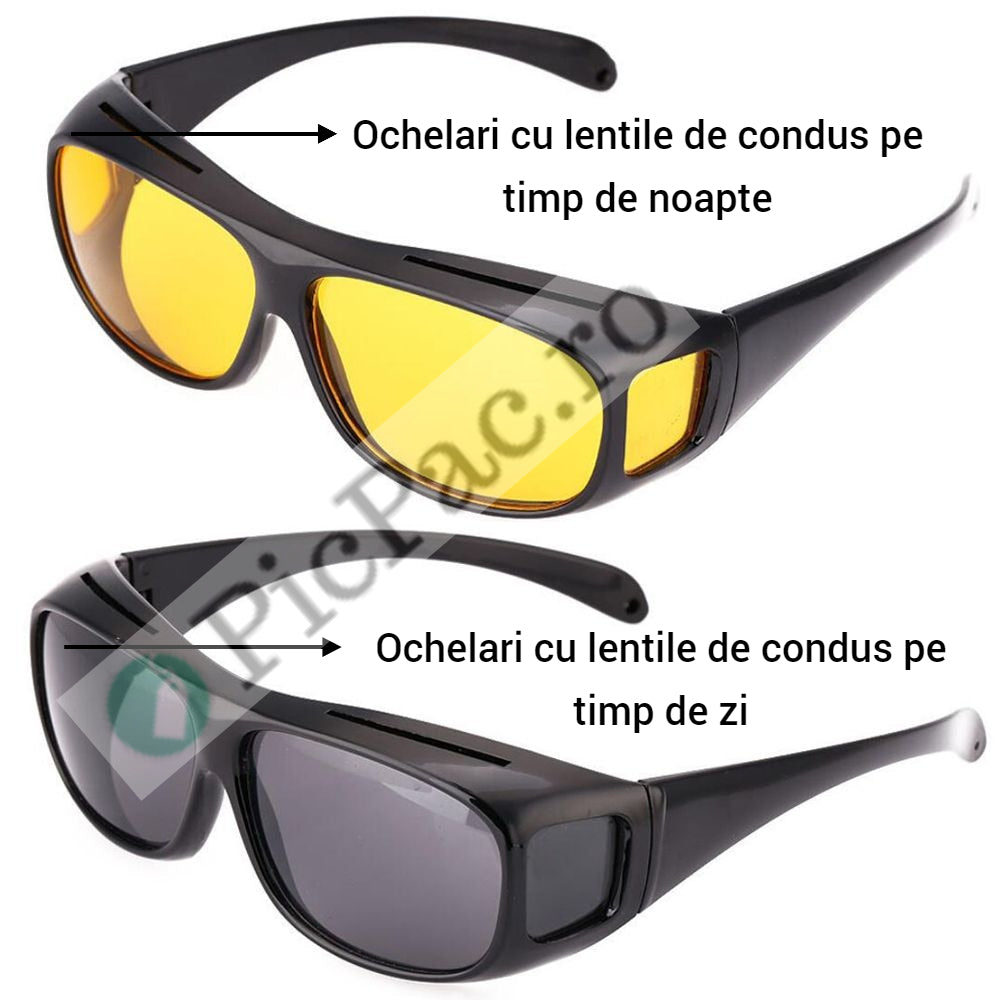 Oferta include 2 perechi de ochelari pentru soferi, una pentru noapte si una pentru zi.