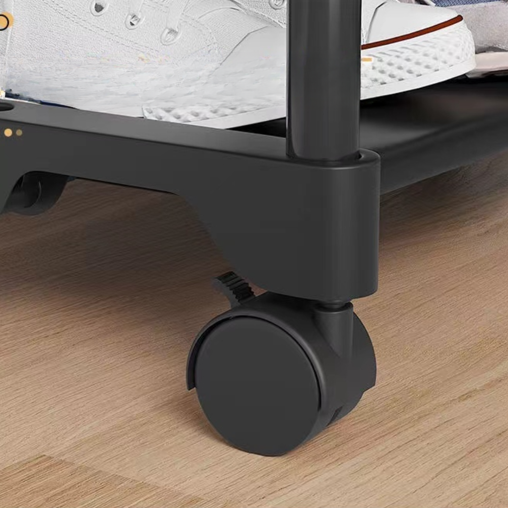 Suportul are 4 picioare care sunt fixate ferm prin două tije metalice, astfel încât șina pentru haine să aibă o stabilitate mare. În plus, structura și țesătura îl fac un produs mai rezistent și mai durabil.