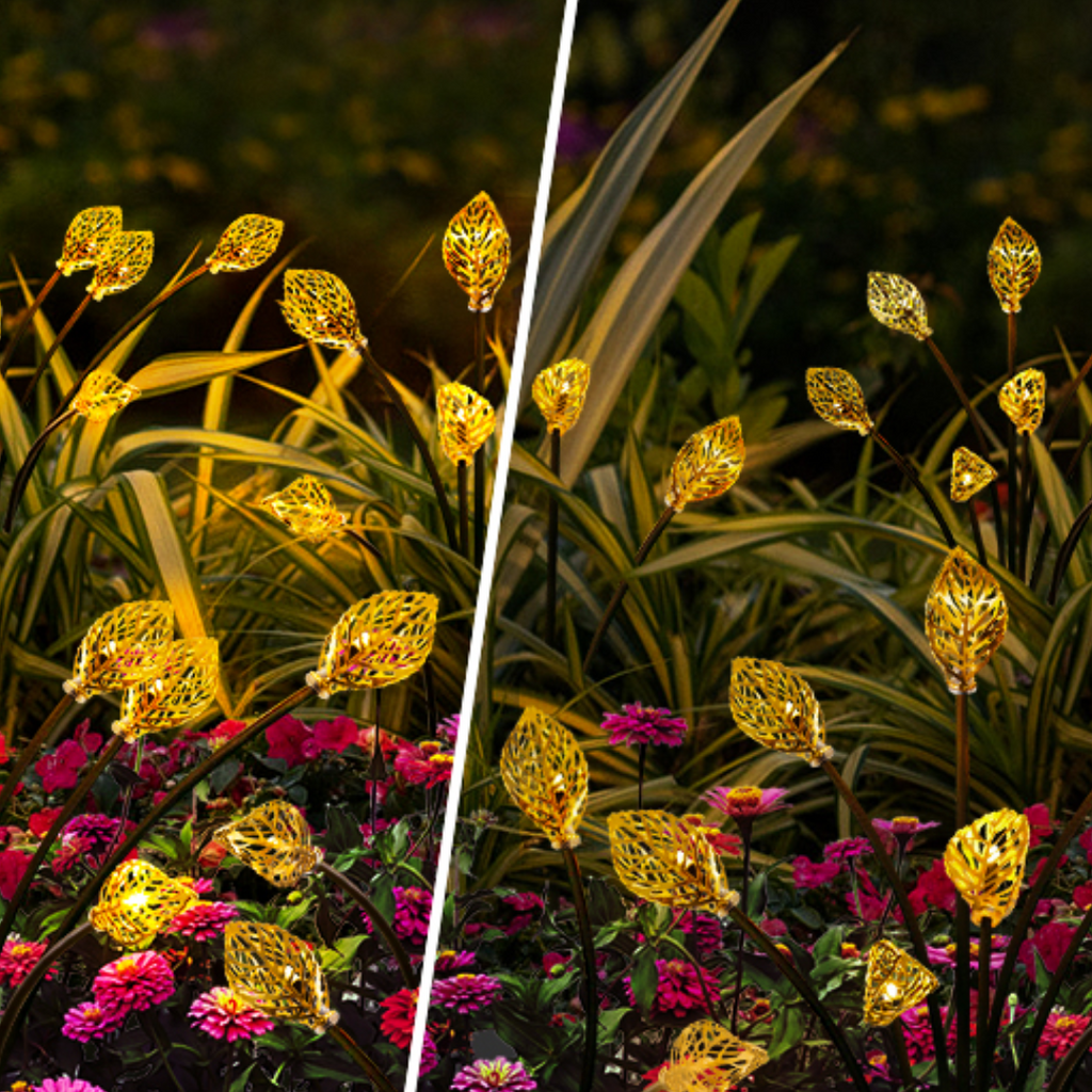 Lămpile solare model cu frunze sunt proiectate cu un stâlp mai moale și mai flexibil decât alte lumini solare de grădină, legănându-se în briza și răspândindu-se uniform fără a se înghesui. Lumina alimentată cu energie solară are 2 moduri de lumină: mereu aprinsă și intermitent. Se creează o ambianță fascinantă în ambele.
