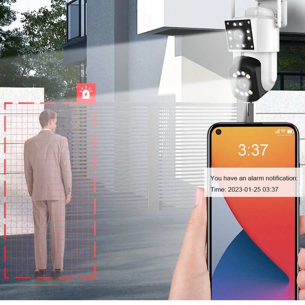 Funcția de detectare a mișcării umane este esențială pentru a identifica orice activitate suspectă în zona monitorizată. Atunci când camera detectează mișcare, activează alarma pentru a te alerta instantaneu și pentru a descuraja eventualele tentative de intruziune sau furt.