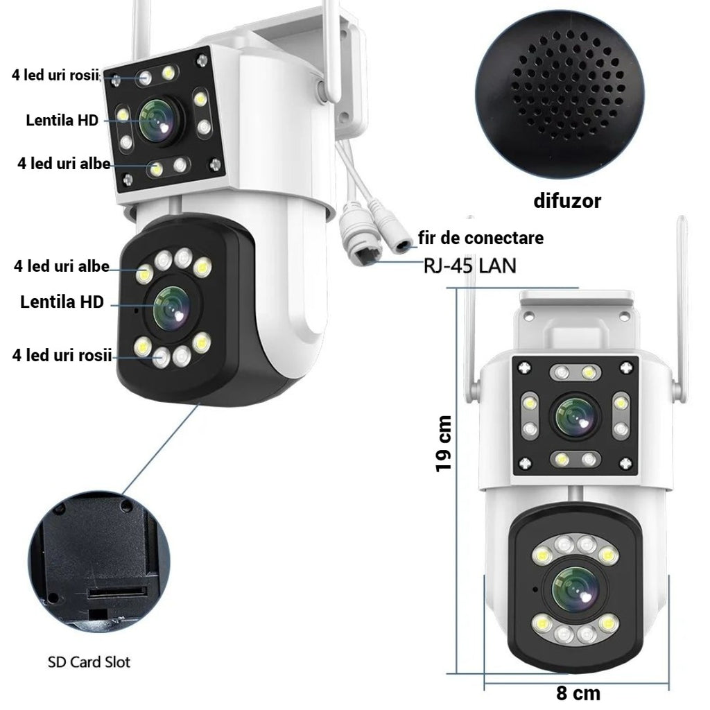 Această cameră de securitate avansată este o soluție completă pentru monitorizarea și protecția eficientă a casei tale. Cu funcția de alarmă, detectare a mișcării umane și interfon vocal, poți avea încredere că locuința ta este supravegheată în mod constant și că poți reacționa prompt la orice evenimente neașteptate. Este o investiție valoroasă în siguranța și confortul familiei tale.