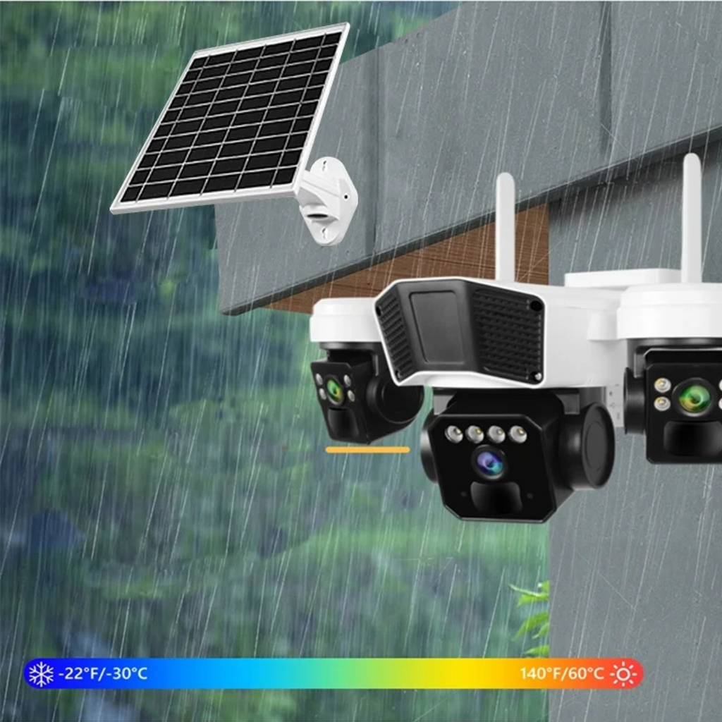 Asigură-ți locuința, afacerea sau proprietatea cu Cameră de Supraveghere Solară 4G TL3, echipată cu baterie de 16000mAh, 3 senzori PIR pentru detectarea mișcării și conectivitate 4G pentru monitorizare de la distanță. Datorită panoului solar eficient, această cameră funcționează autonom, fără necesitatea unei alimentări permanente la rețea.