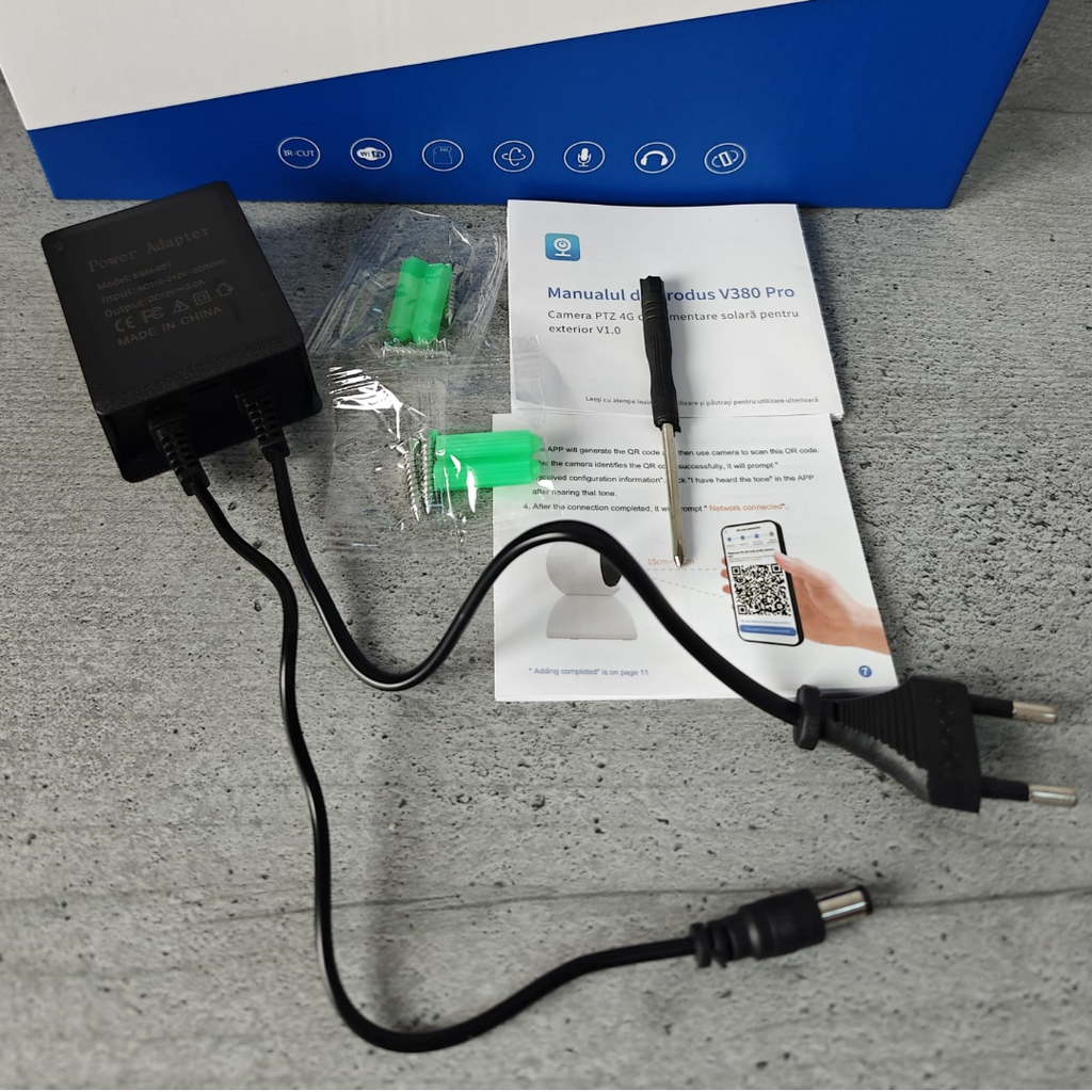 Pachet Promo! Camera supraveghere cu trei video WiFi, CCTV PTZ, infrarosu, vedere nocturna, stocare cloud /SD, doua cai audio si Card de memorie 32GB