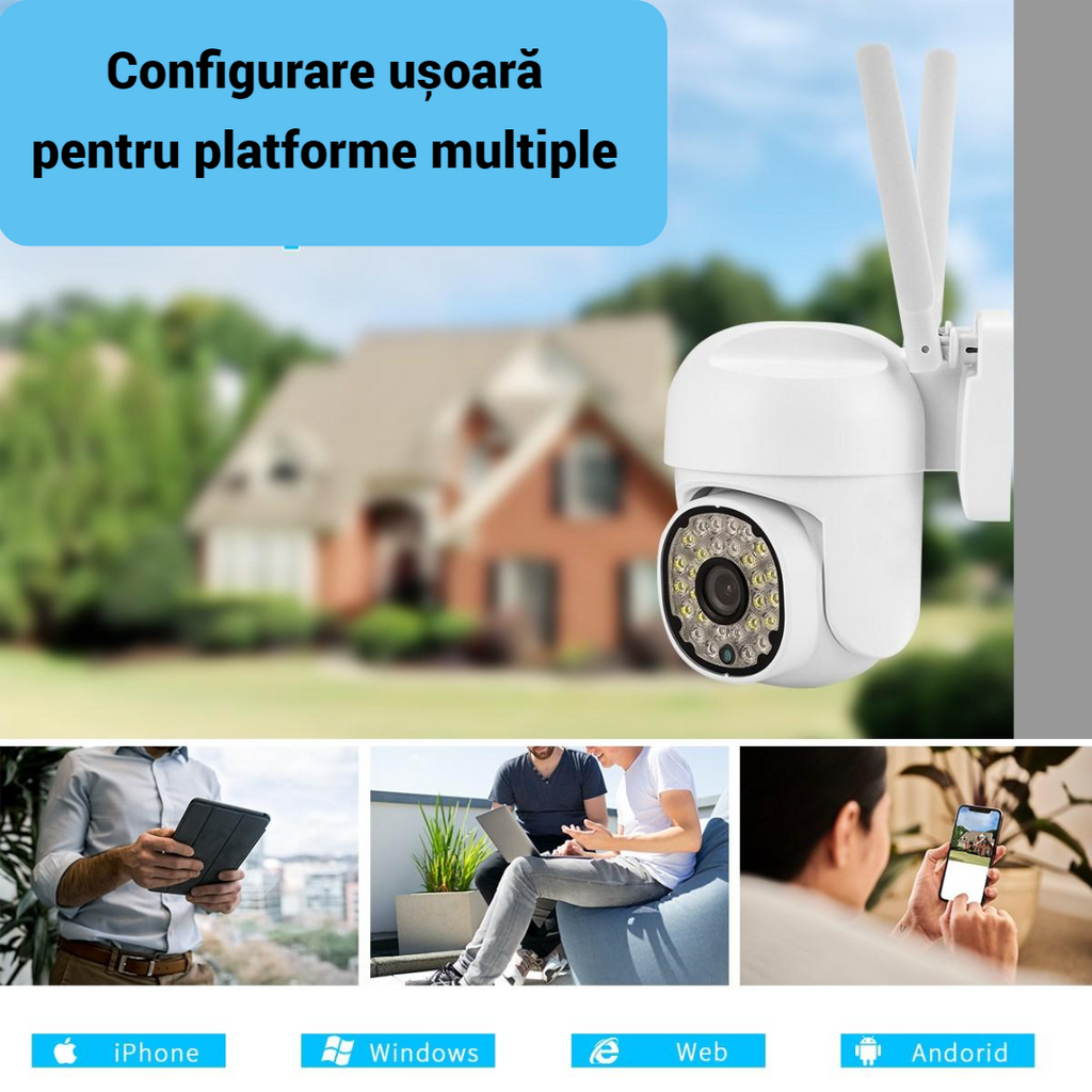 Pe langa aceste caracteristici excelente, camera wifi de exterior este si rezistenta la intemperii, asigurandu-se ca poate functiona in orice conditii meteorologice. Deci, indiferent daca ploua sau ninge, camera ta va fi in continuare functionala.