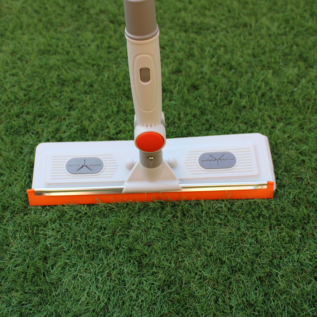 Cap rotativ la 180 de grade: apăsați butonul, rotiți capul de curățare a geamurilor la un unghi adecvat și eliberați-l pentru a-l bloca. Apoi puteți curăța toate tipurile de ferestre, cabine de dus, oglinzi, podele, etc.