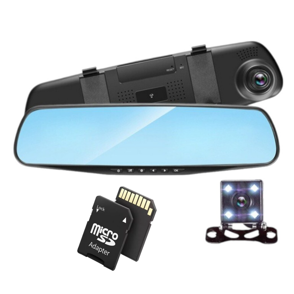 Pachet promo! Oglinda monitor dual camera 4.3 inch pentru parcare si Card memorie 32 GB