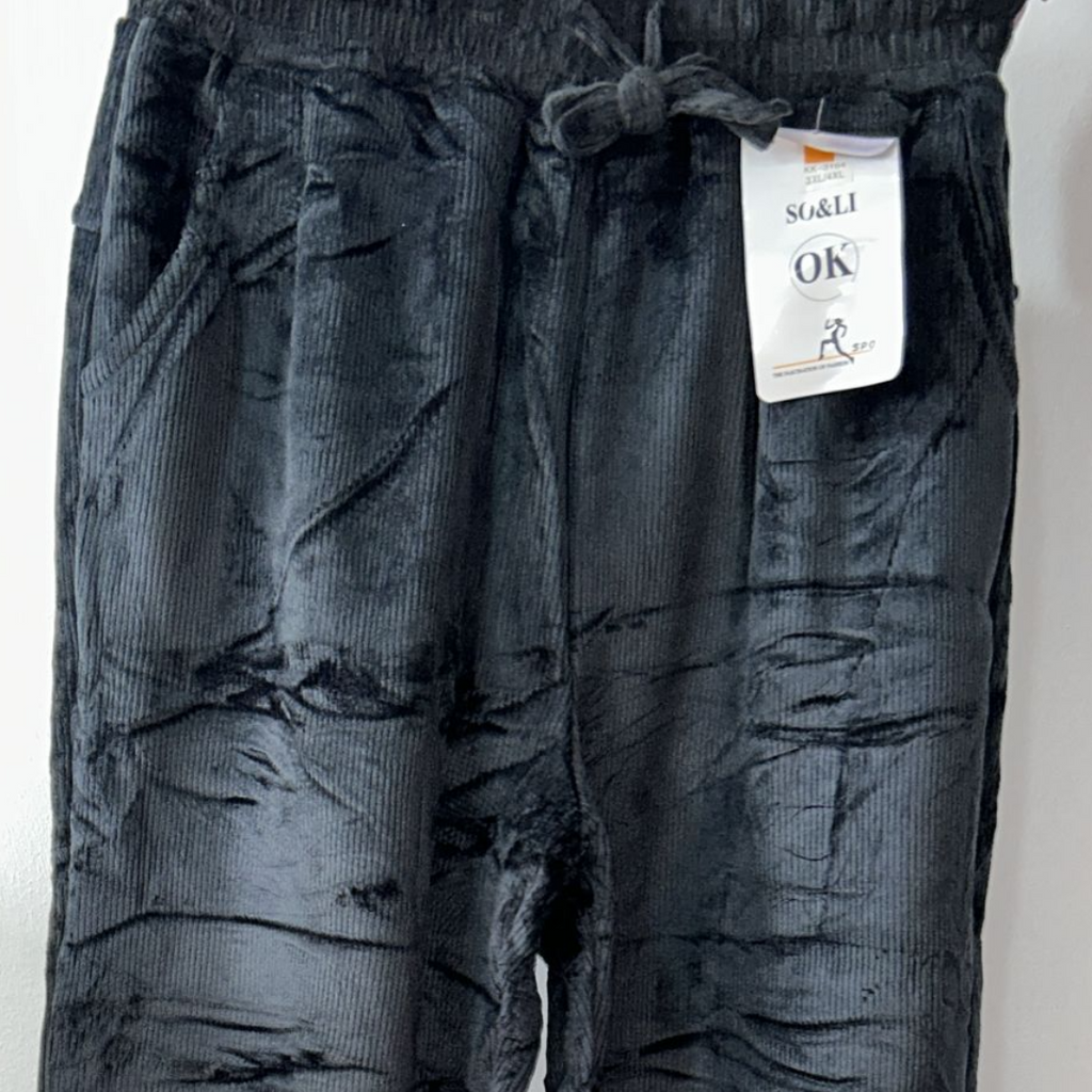 Alege confortul si stilul chiar si in zilele reci cu acesti pantaloni imblaniti pentru dama, realizati din material raiat moale si placut la atingere. Captuseala groasa, catifelata, pastreaza caldura corpului, oferind un plus de confort termic si libertate in miscare.