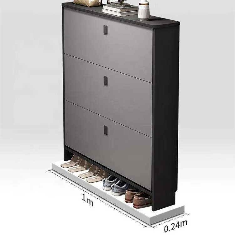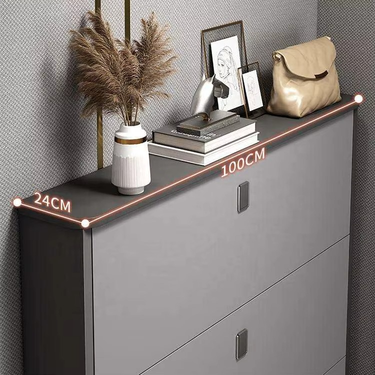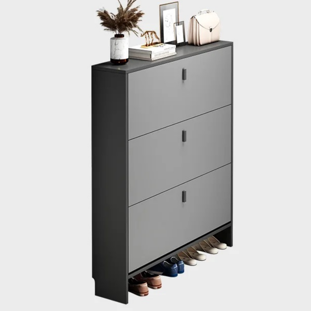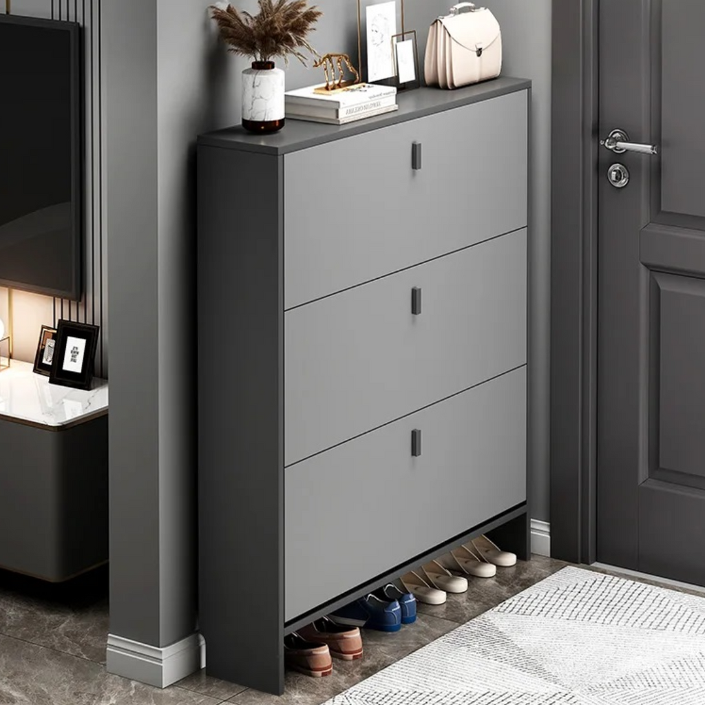 Indiferent dacă îl plasezi în hol, dormitor sau alte încăperi, un pantofar modern și incapător cu 3 uși în culoarea gri va aduce un plus de funcționalitate și ordine în locuința ta. Cu designul său contemporan și utilitatea sa practică, acest tip de mobilier este alegerea perfectă pentru a-ți păstra pantofii în ordine și la îndemână.