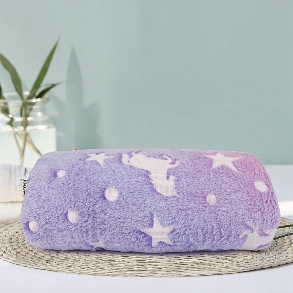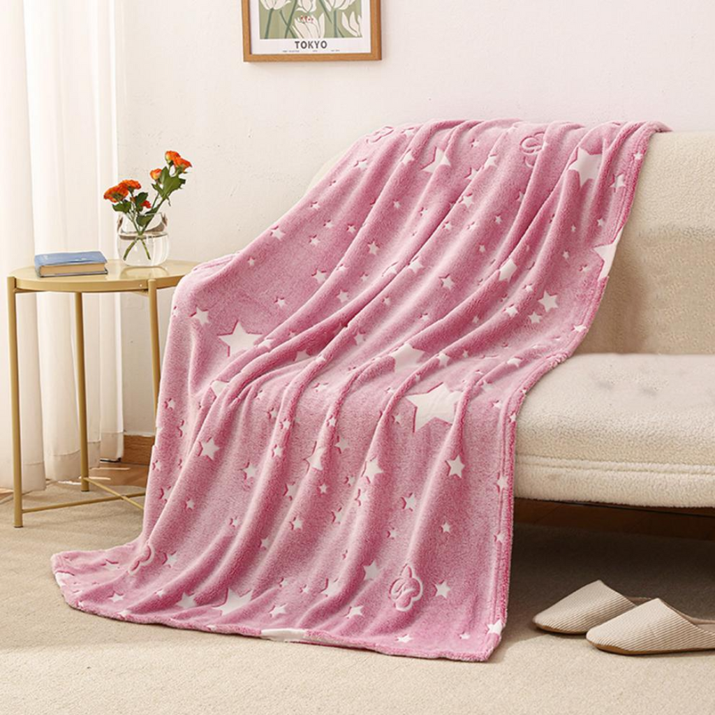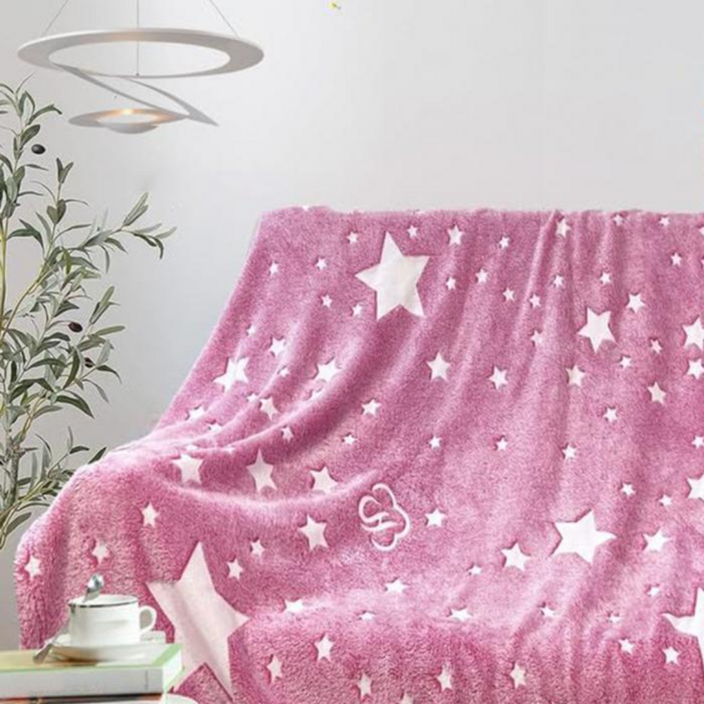 Pătură finuță din microfibre, care va lumina chiar și cele mai întunecate zile. Fundalul roz neutru este decorat cu o mulțime de steluțe mici și mari, care luminează în întuneric, astfel încât vor asigura un farmec romantic perfect seara sau în timpul nopții.