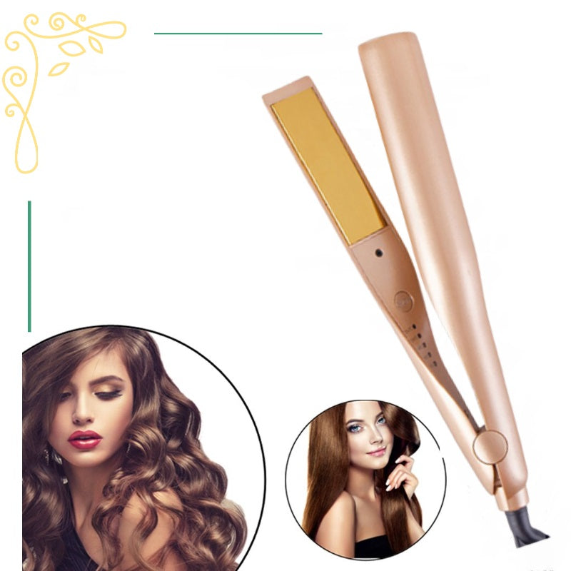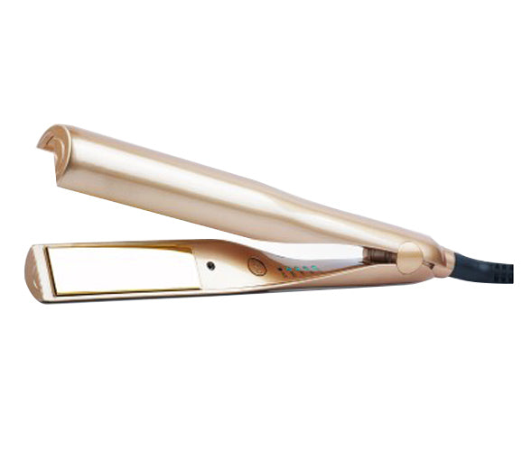 Invelis placi: titan golden mirror Dimensiuni: Lungime: 27 cm Lungime placa: 10 cm Temperatura: ajustabila 140°C - 230°C Tehnologii inglobate: incalzire ultra-rapid Display: Led indicator Moduri speciale: automatic OFF(60 min) Cablu: 2,5 m, rotativ 360° Voltaj: 110-240 V Greutate: 264 gr Material: invelis titan Culoare: auriu Utilizare: par uscat Tehnologie: cablu rotativ 360 grade, LED, onduleaza si indreapta Functii: control temperatura, oprire automata. Destinat pentru: indreptare, ondulare, valuri