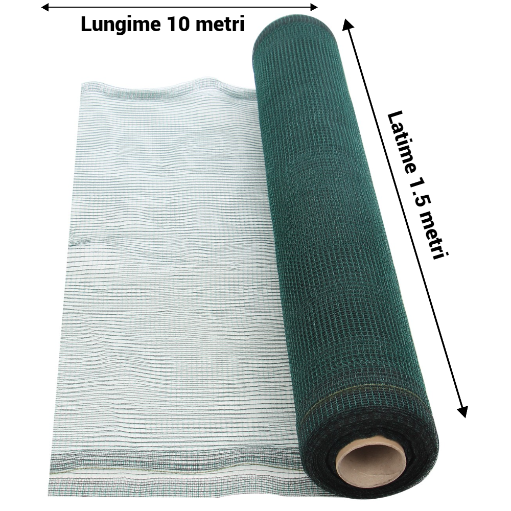 Beneficii: - Printre numeroasele utilizari se numara protejarea lucrurilor, a oamenilor de razele solare, sau delimitarea vizuala a zonelor private. - Se poate utiliza si pentru ACOPERIRE SERE - Pastraza o temperatura interioara optima, la un nivel care nu afecteaza termic legumele sau florile - Se poate utiliza pentru culturile din camp, la umbrirea culturilor sensibile la lumina puternica (ex: ardei) - Poate fi utilizata ca paravan pentru chioscuri, parcari, balcoane, terase sau chiar in gradina - De asemenea, poate fi utilizata ca paravan pentru garduri sau schele si cladiri aflate in constructie. - Se poate folosi si pe orizontala, in zonele exterioare impotriva razelor solare si importiva vantului, sau in spatiile pentru recreere
