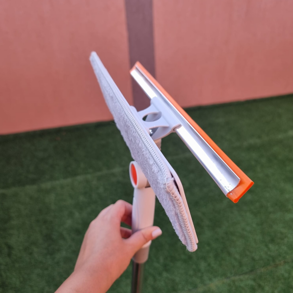 Stergătorul de geamuri cu laveta absorbanta si racleta, este echipamentul perfect pentru spălarea geamurilor. Laveta din microfibră îndepărtează fără efort spuma și apa cu săpun, în timp ce lama de cauciuc îndepărtează apa pentru o uscare rapidă și fără urme.