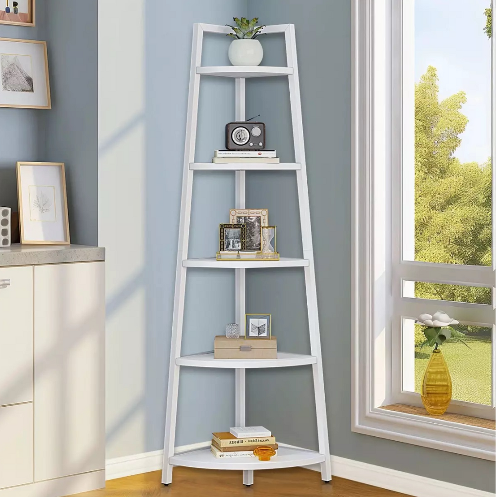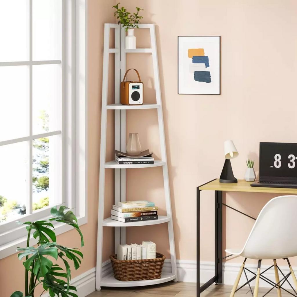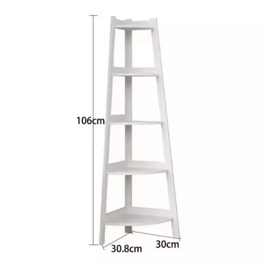 Raftul are un design cu 5 etaje in forma de scara, oferind spatiu generos de depozitare si expunere pentru carti, plante, obiecte decorative si altele.