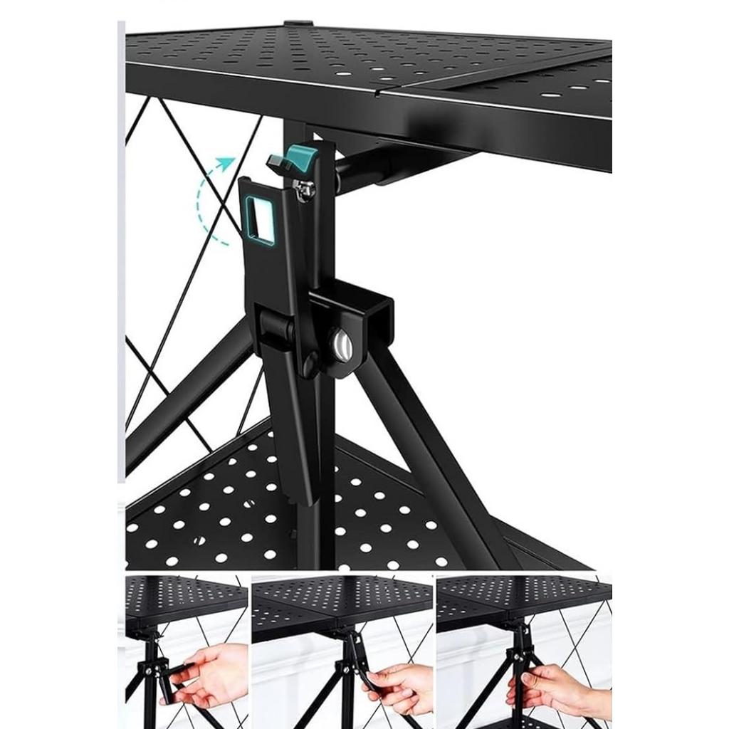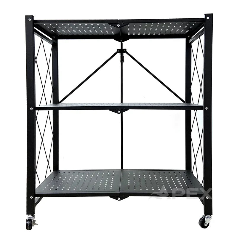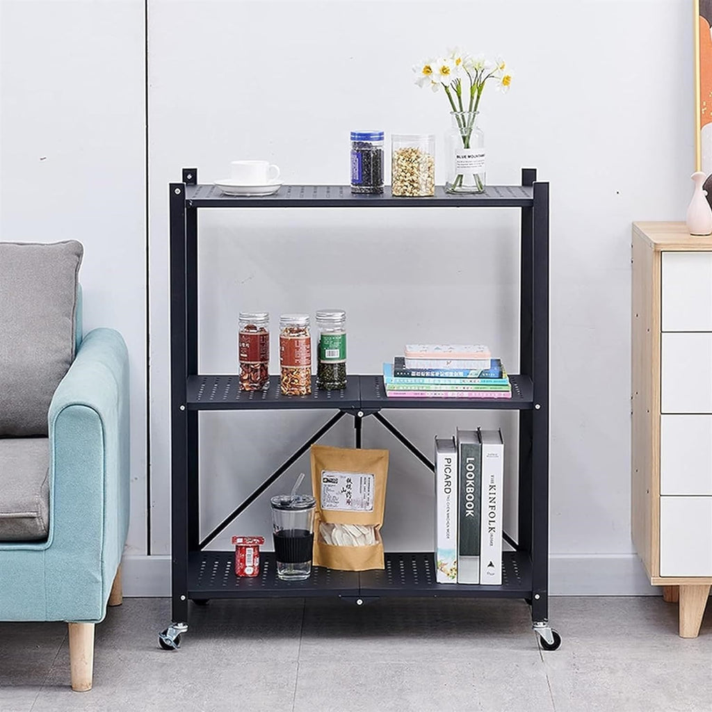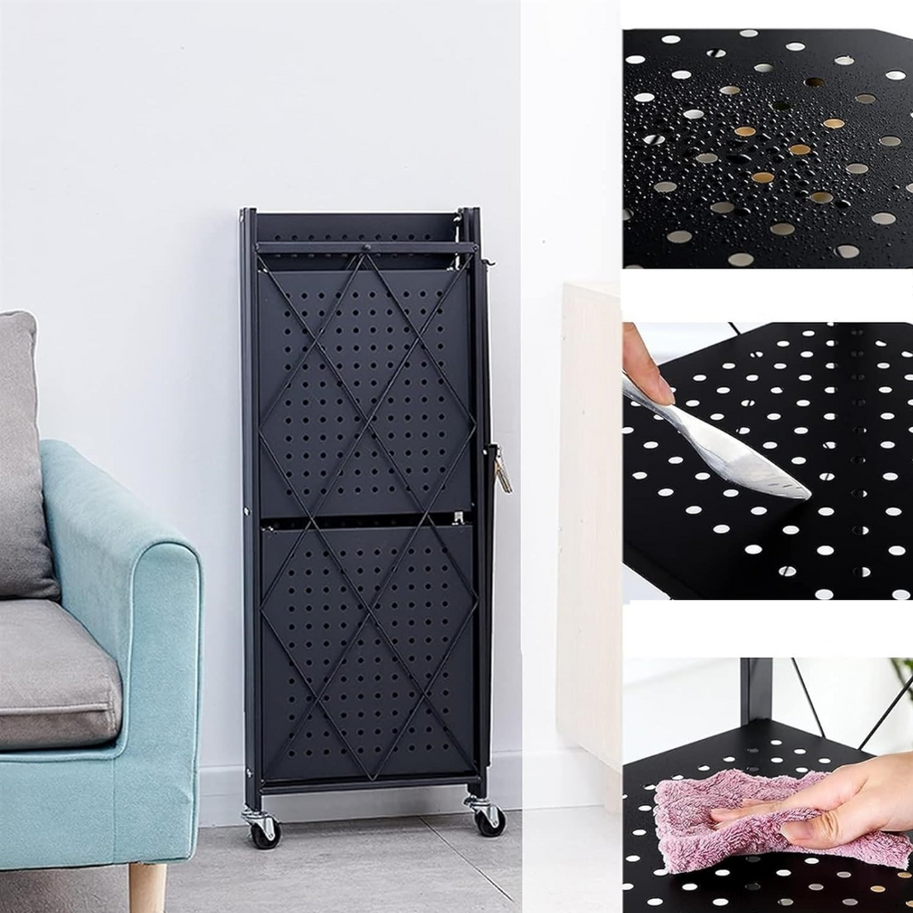 - Deoarece este pliabil, acesta poate fi si usor depozitat la indemana, fara a ocupa foarte mult spatiu. Pentru pliere, indepartati polita superioara (restul rafturilor fiind pliabile impreuna cu intreaga structura).