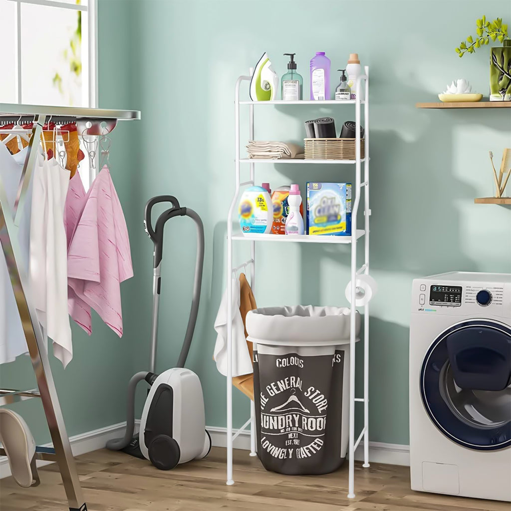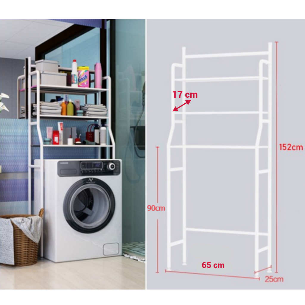 Raftul de depozitare cu 3 polițe de amplasat deasupra mașinii de spălat rufe va fi cu siguranță soluția perfectă pentru a crea mai multe spații suplimentare de depozitare în baia supraaglomerată sau în spălătorie.