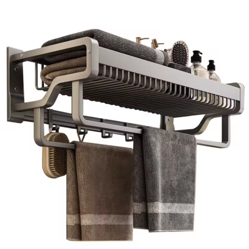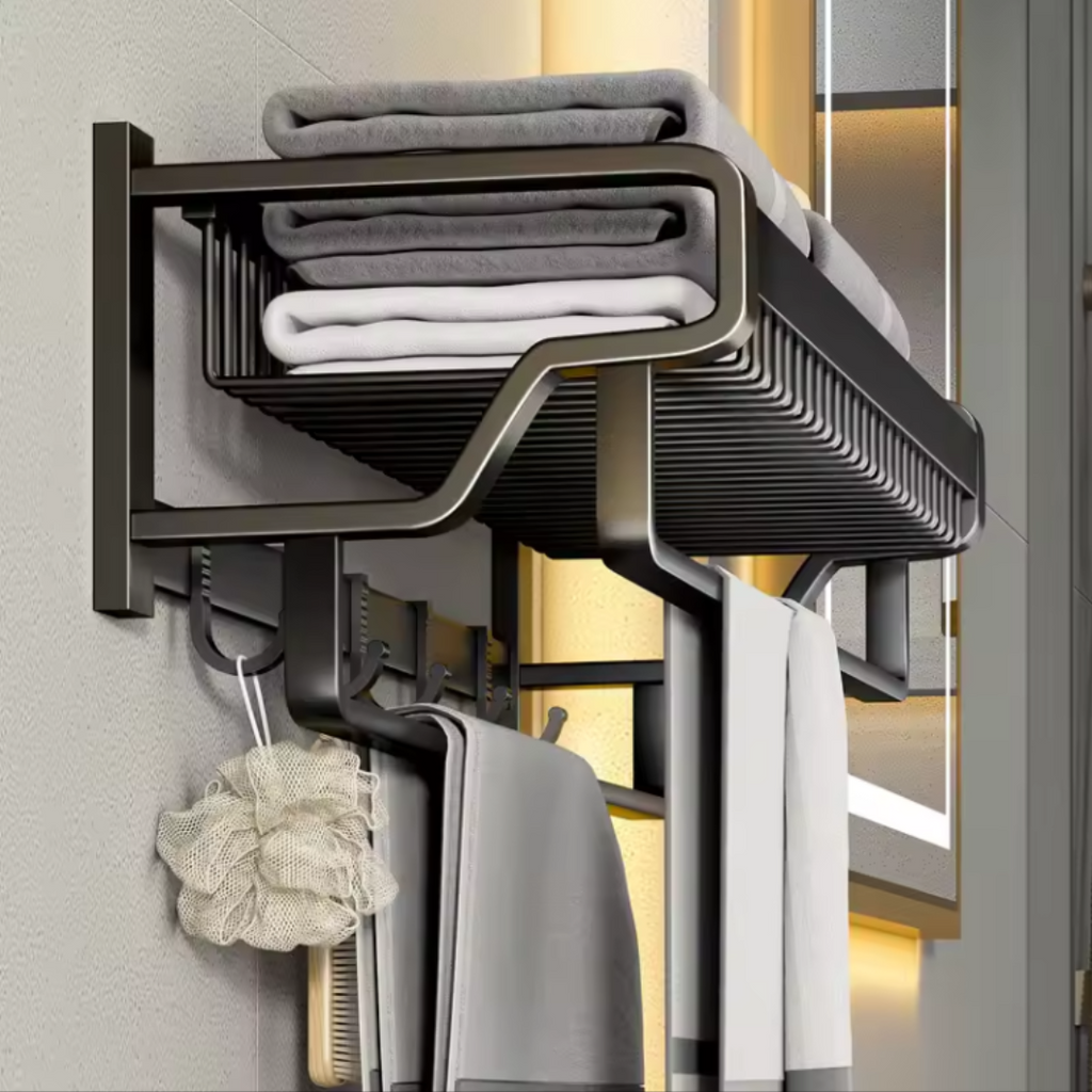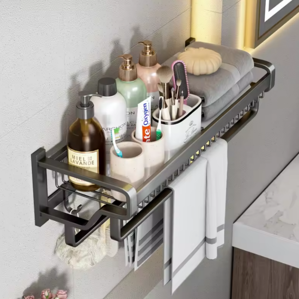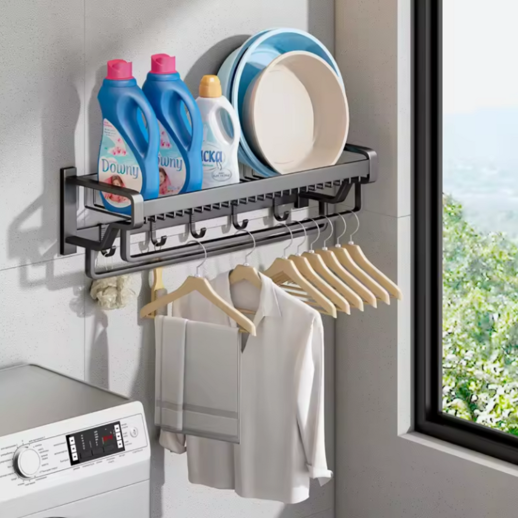 Un raft metalic multifuncțional cu agățători pentru diverse ustensile și prosoape reprezintă o soluție practică și eficientă pentru organizarea spațiului din bucătărie sau baie. Acest tip de raft combină utilitatea agățătorilor pentru a păstra ordine și accesibilitate în bucătărie sau baie cu spațiul de depozitare oferit de rafturile metalice.