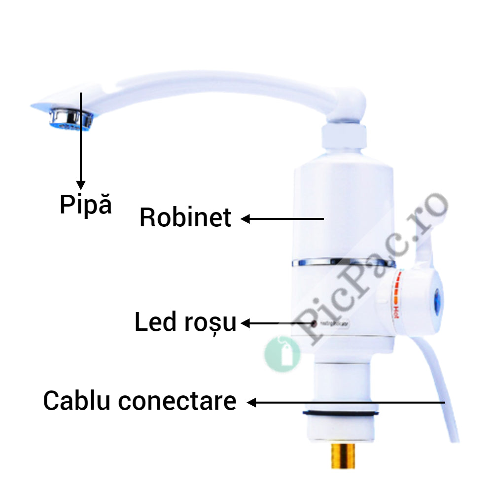Robinetul arata ca un robinet normal, dar in interior are un element ce incalzeste apa la o temperatura de pana la 60° C.