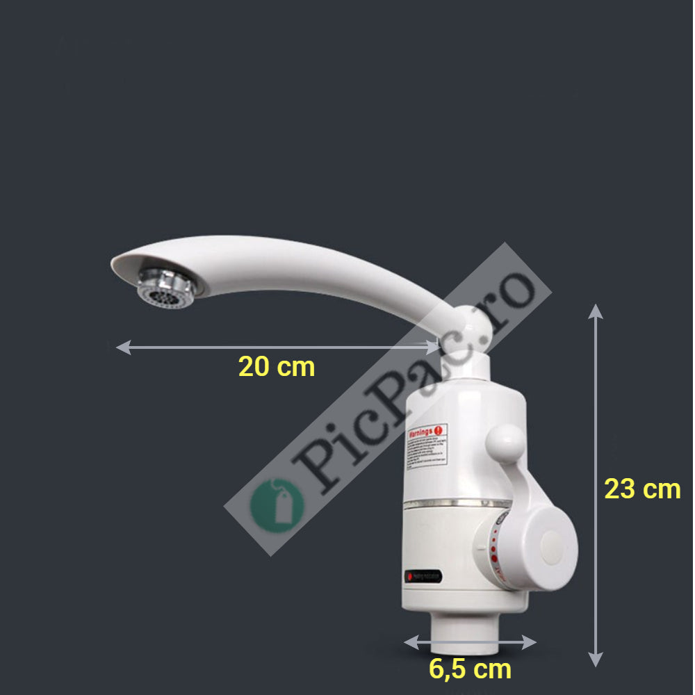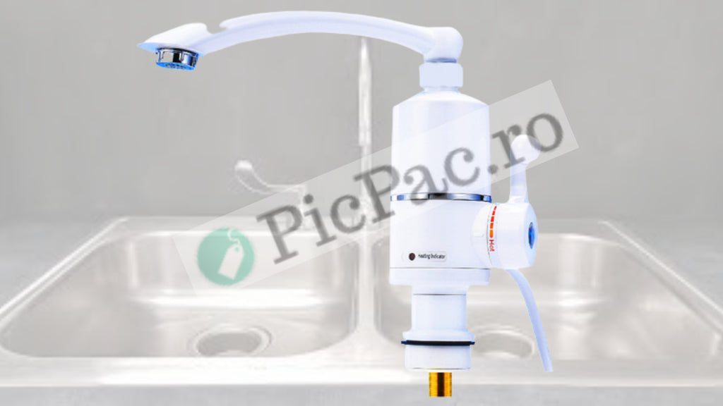 Robinet instant electric pentru apa calda, in doar cateva secunde aduce apa la o temperatura de 60 de grade, se monteaza usor pe orice tip de chiuveta, poate fi luat in excursii de camping, nu necesita conectare la centrala termica sau boiler.
