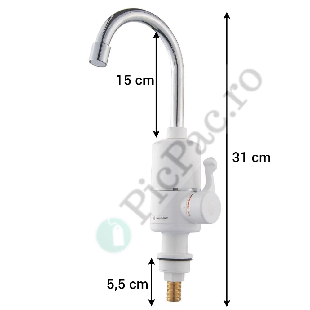 Atunci cand nu ai gaze, sau alt sistem de incalzire a apei si nu vrei sa depinzi de un boiler, robinetul cu prindere pe chiuveta este produsul pe care il cauti. Acesta reuseste in doar cateva secunde, sa aduca apa la o temperatura de 60 de grade. Se monteaza usor pe orice tip de chiuveta, poate fi luat in excursii de camping, nu necesita conectare la centrala termica sau boiler.