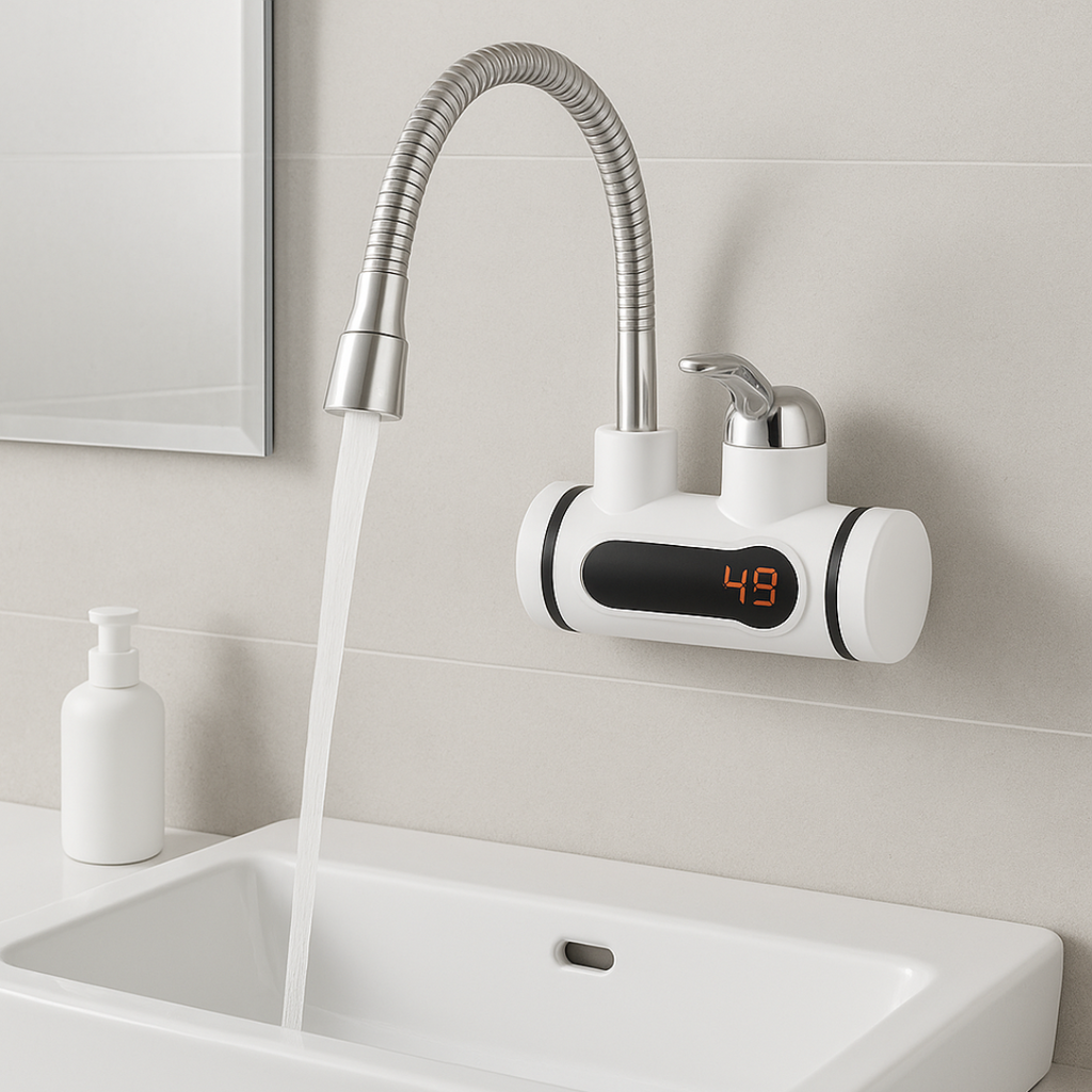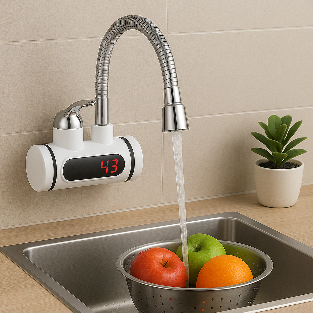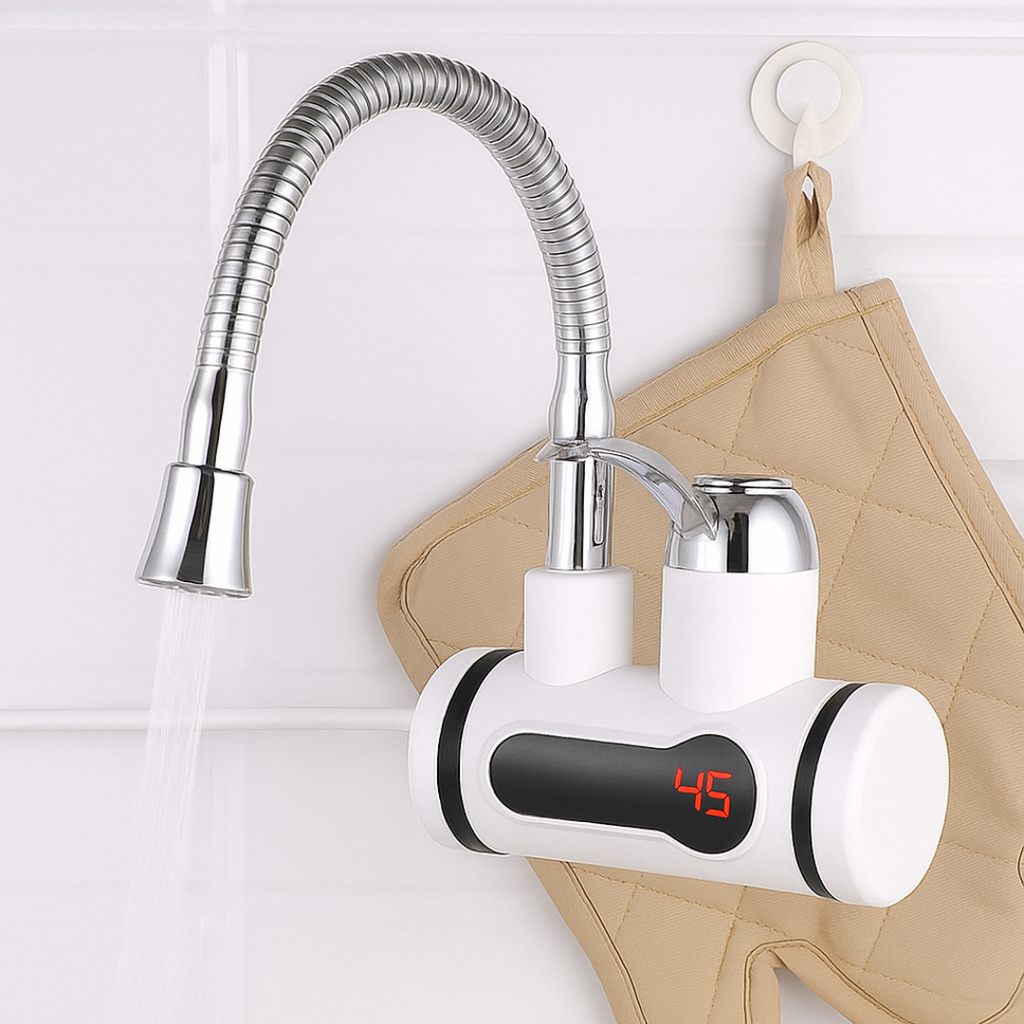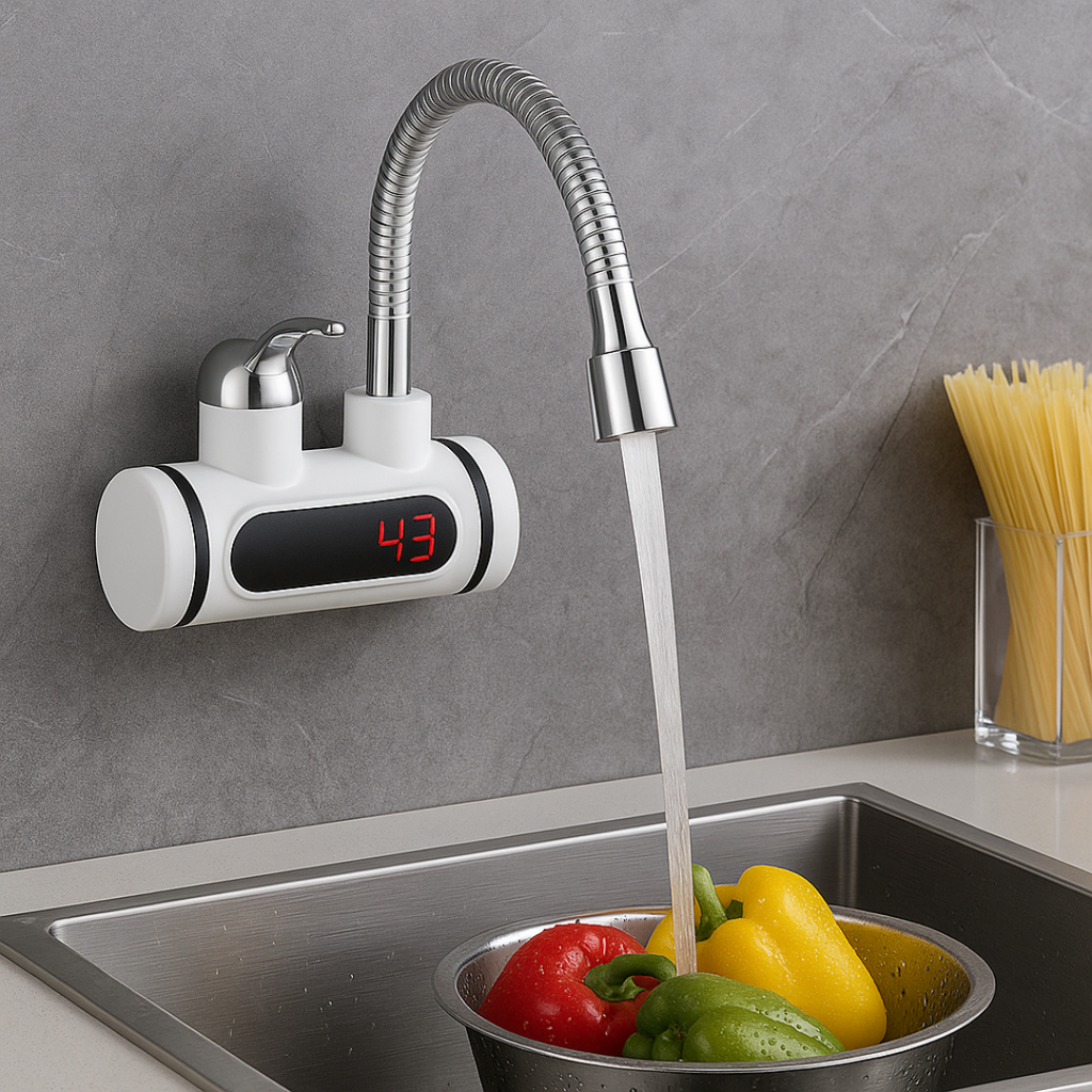 Beneficii: - Robinetul instant 3000 W, va ajuta sa obtineti apa calda de la robinet in doar cateva secunde in locurile unde nu este accesibila apa calda. - Robinetul de apa calda instant, reprezinta un robinet electric care incalzeste instant apa in cantitati nelimitate, cu o instalare si utilizare facila. - Arata ca un robinet normal, dar in interior are un element ce incalzeste apa la o temperatura de pana la 60 grade C.